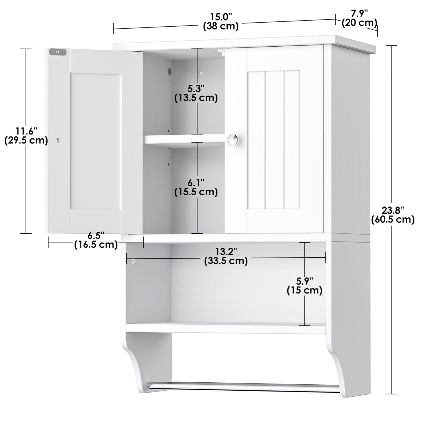 • Space Saver: Measuring just 15"W x 7.9"D x 23.8"H, the bathroom medicine cabinet takes up minimal space but offers plenty of room for your toothbrushes, toiletries and towels, keep your small bathroom neat and tidy