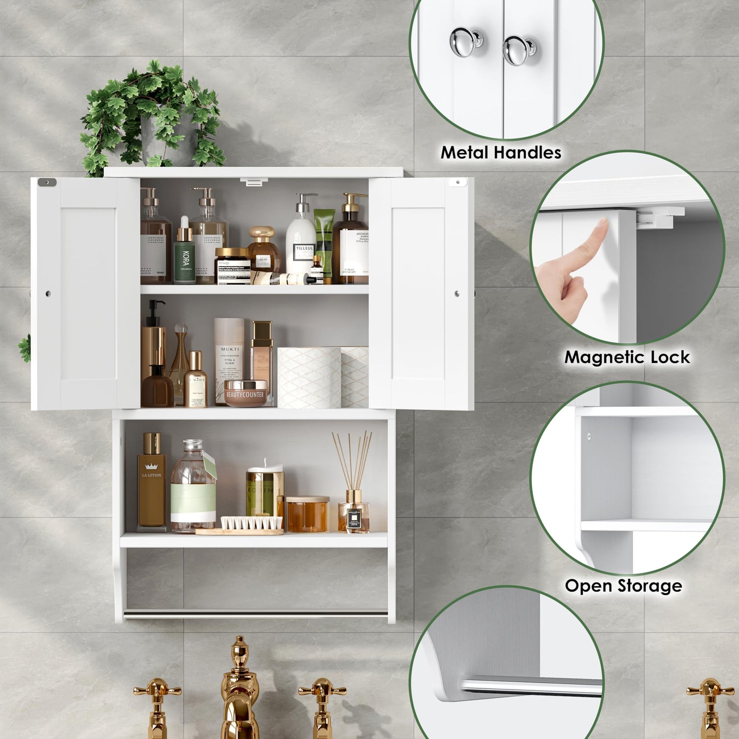 • Sturdy Build & Adjustable Shelf: Made with EPA-grade particleboard and metal hardwares, the wooden bathroom hanging cabinet boasts a sturdy structure, plus the adjustable shelf lets you customize hidden space, making it non issue for high bottles