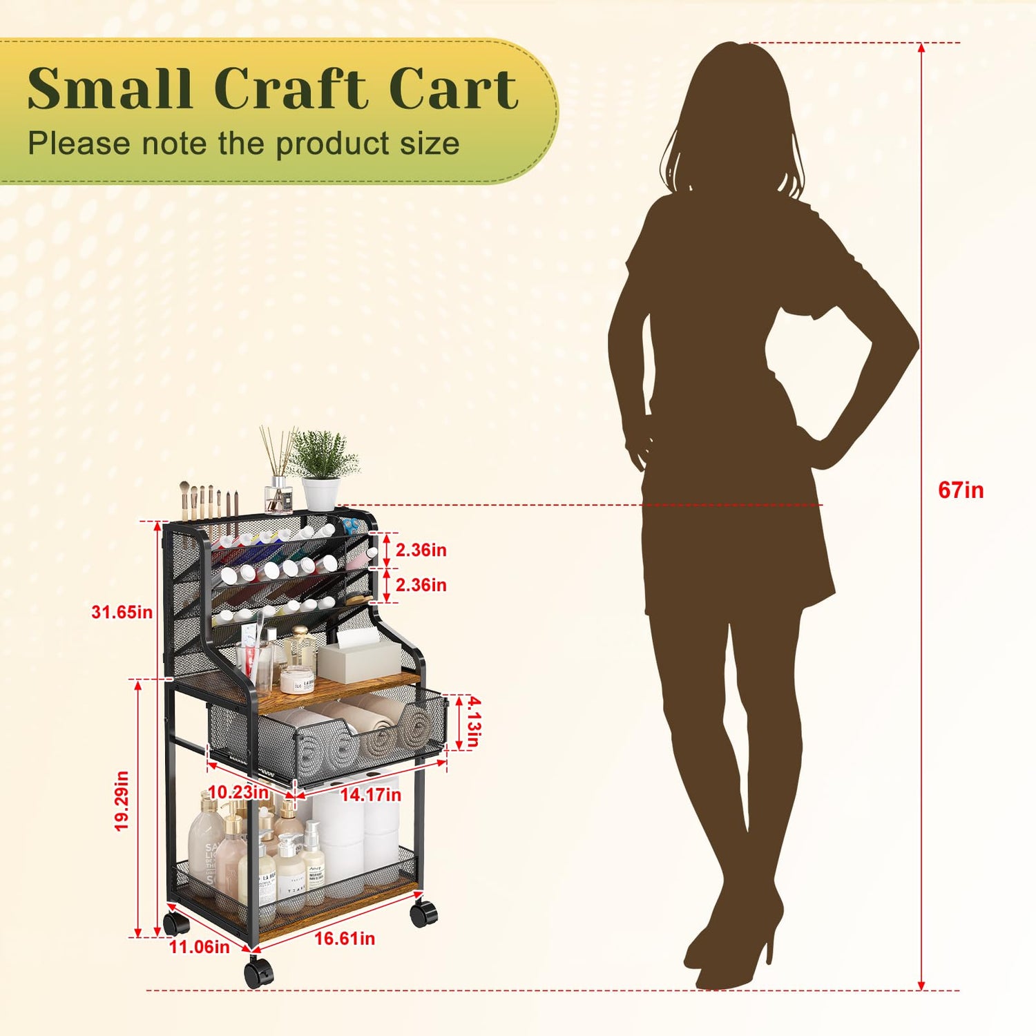 - 【Smooth & Lockable Wheels】Equipped with 4 360° swivel wheels, this rolling utility cart glides easily across tile, hardwood, or carpeted floors. Two lockable wheels keep the cart steady and secure, so you can store bathroom supplies, cleaning products, or beauty tools without worry.