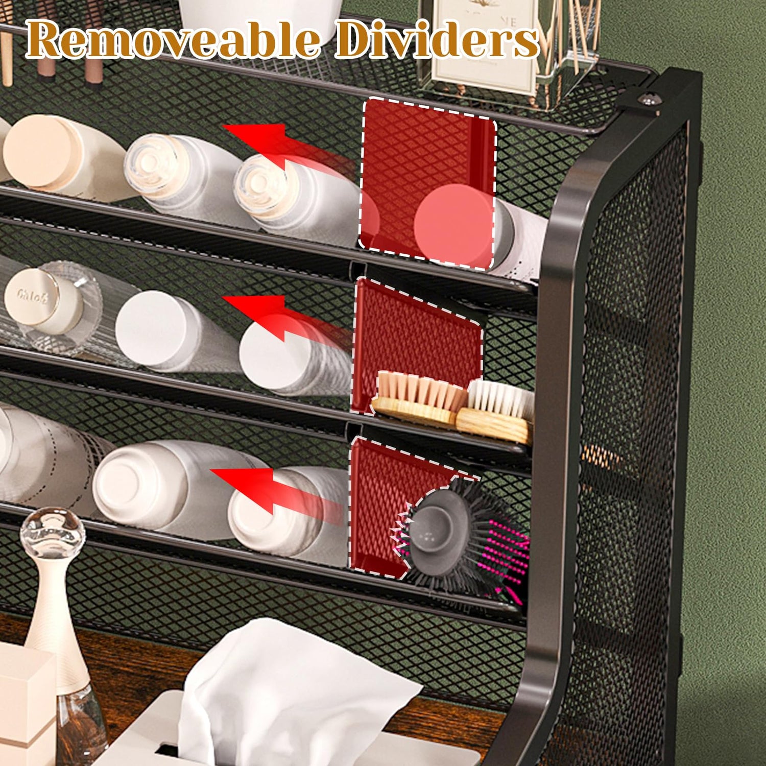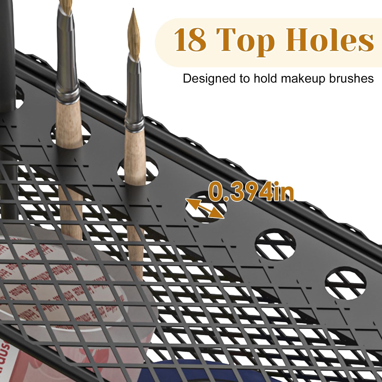 - 【Top Tier with 18 Brush & Tool Slots】The top shelf includes 18 small holes (10 mm/0.394 in each), designed to neatly hold toothbrushes, toothpaste, makeup brushes, and eyebrow pencils. Perfect for keeping bathroom counters or vanity tables clutter-free, it helps you maintain a clean, organized routine.