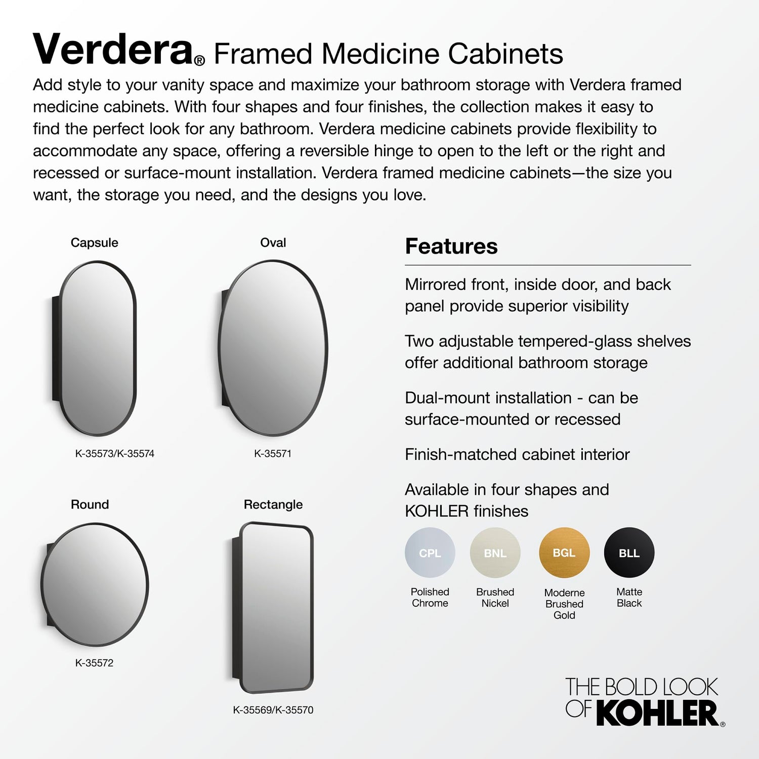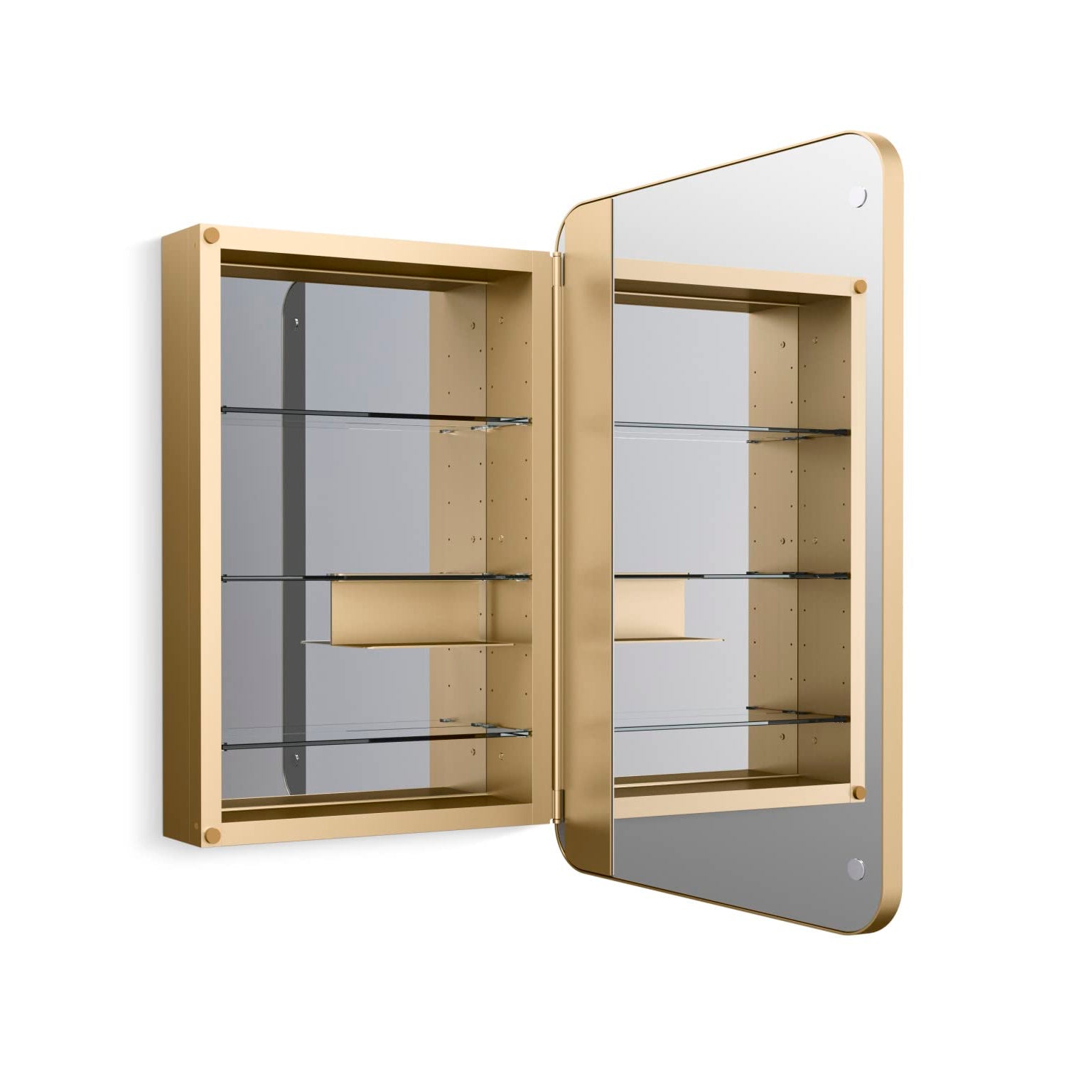 Kohler Verdera Medicine Cabinet, 22" x 34", Rectangular Design, Mirrored Interior, Adjustable Glass Shelves, Rustproof, Moderne Brushed Gold, K-35570-BGL