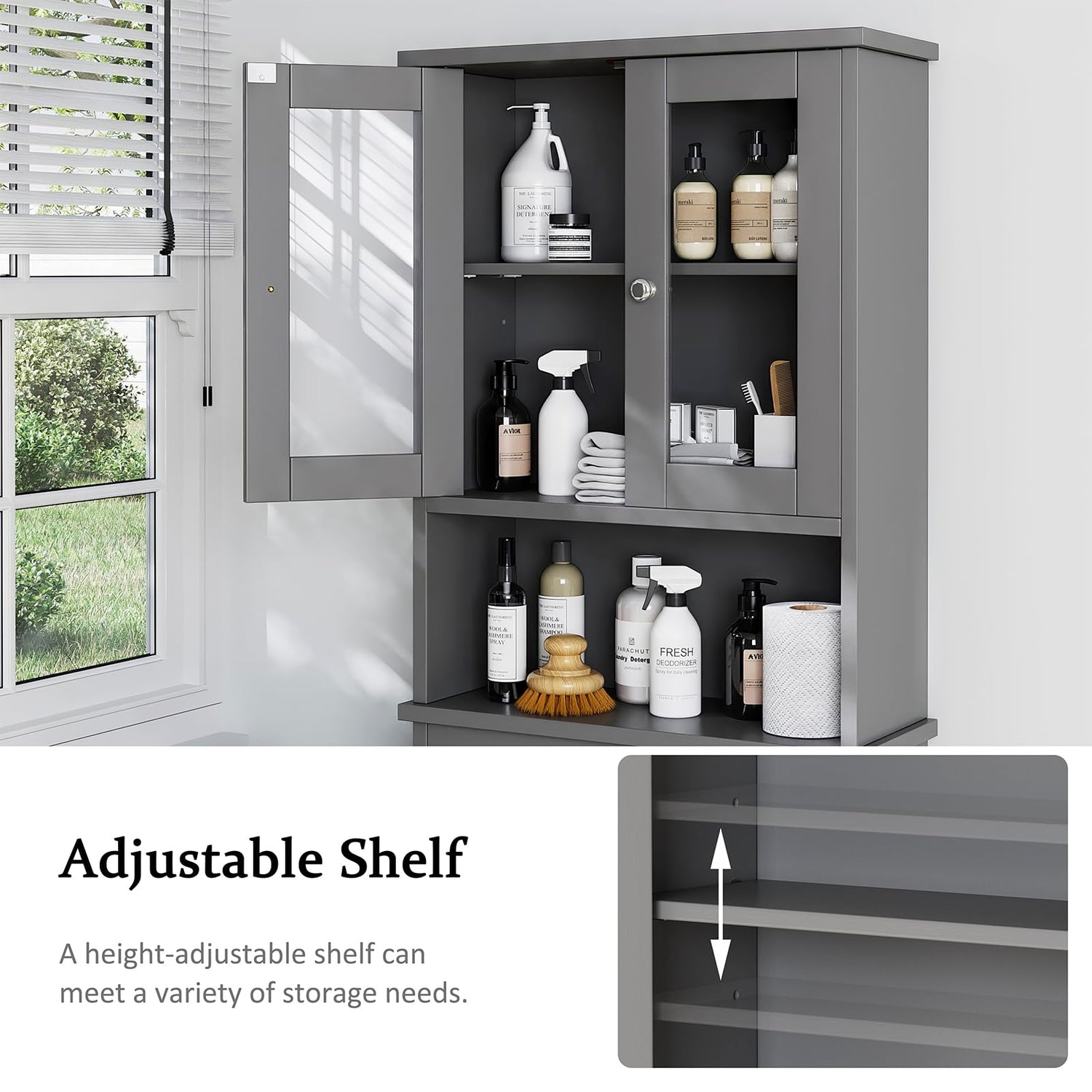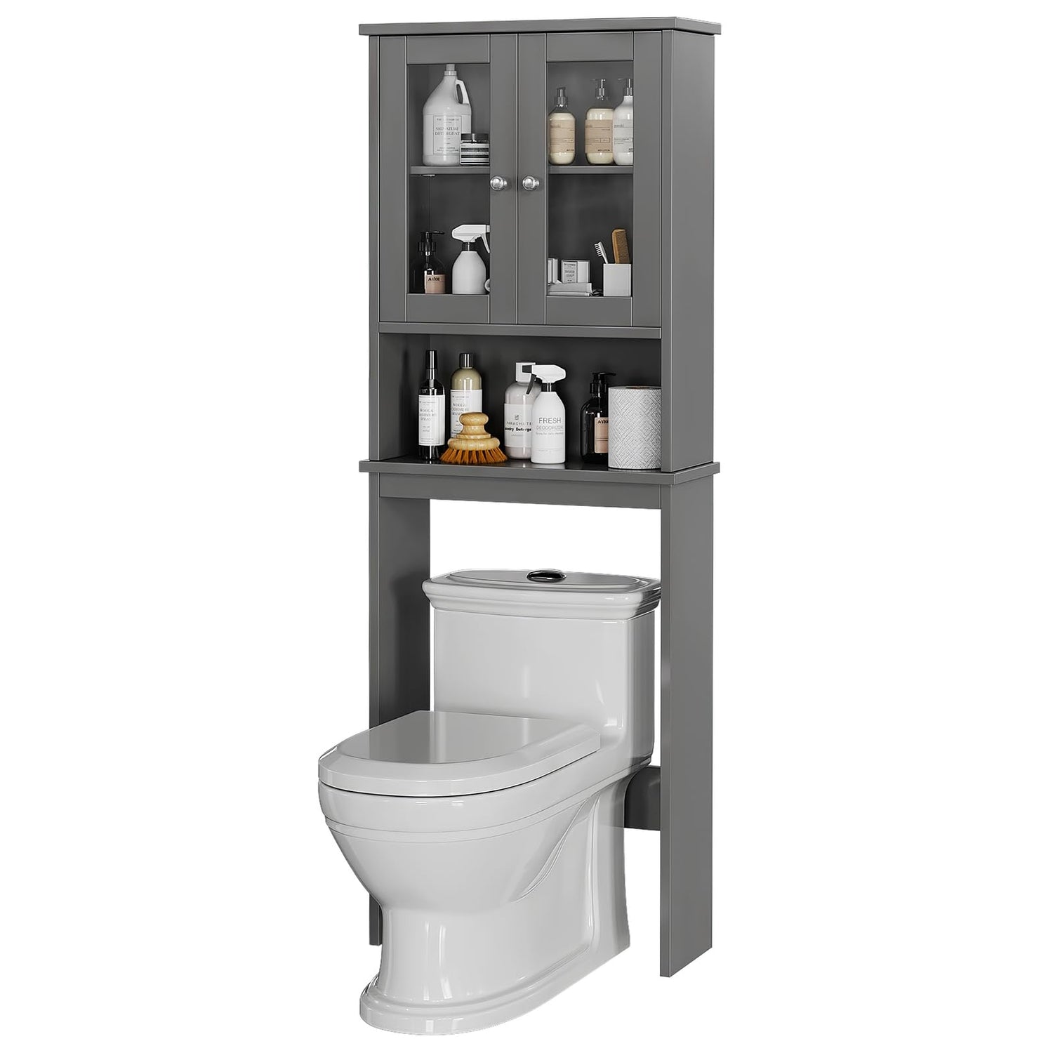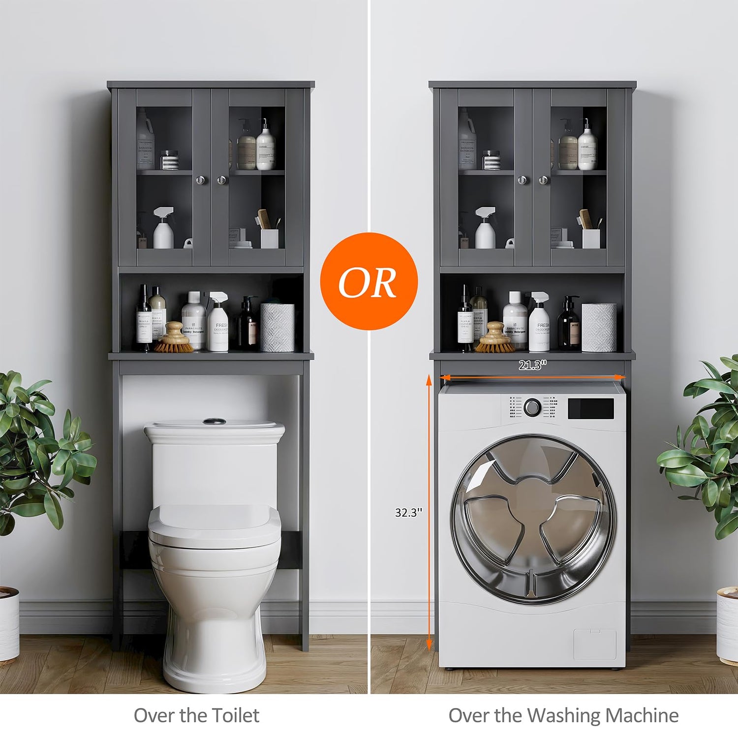 Meilocar Over The Toilet Storage Cabinet, Bathroom Storage Cabinet Over Toilet, Space Saver with 2 Tempered Glass Doors, Grey