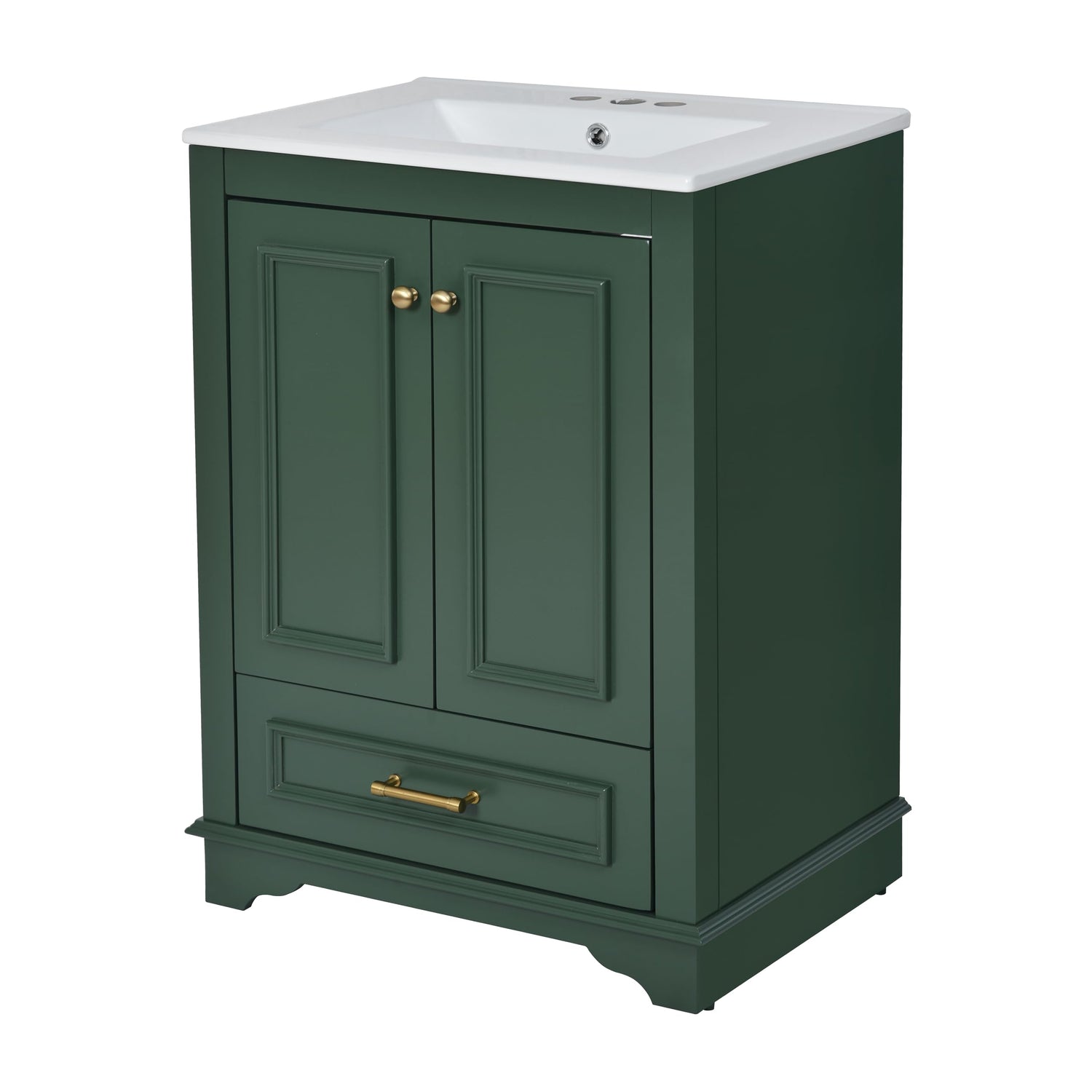 Merax 24" Bathroom Vanity with Sink, Modern Wood Bathroom Vanity Storage Cabinet with Adjustable Shelf and 1 Bottom Drawer, Solid Wood Frame, Ceramic Sink Top