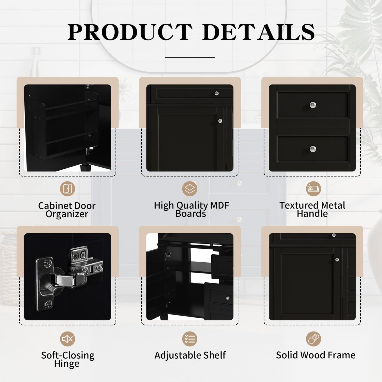 • [ Multi-Purpose Cabinet & Concealed Storage ] Are you looking for stylish and functional storage solutions for your bathroom? Our bathroom vanity provide ample space for all your toiletries and bathroom essentials. The combination of the cabinet body and the drawer perfectly stores all kinds of bathroom products and keeps the necessities away from water stains and dust. Soft-close doors and drawer fronts feature a water-resistant paint finish for durability.