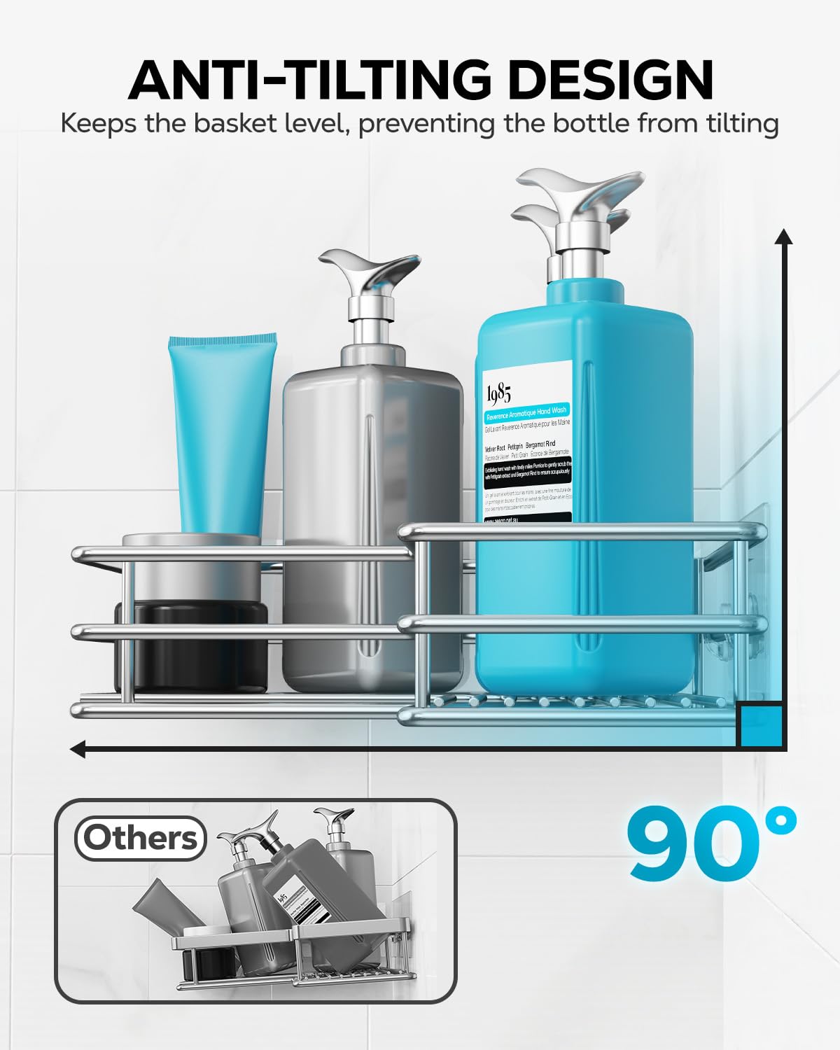 - Big Capacity: Each tier can hold up to 7 small bottles (8 Fl Oz each) or 5 medium bottles (16 Fl Oz each), providing ample space for all your shower essentials.