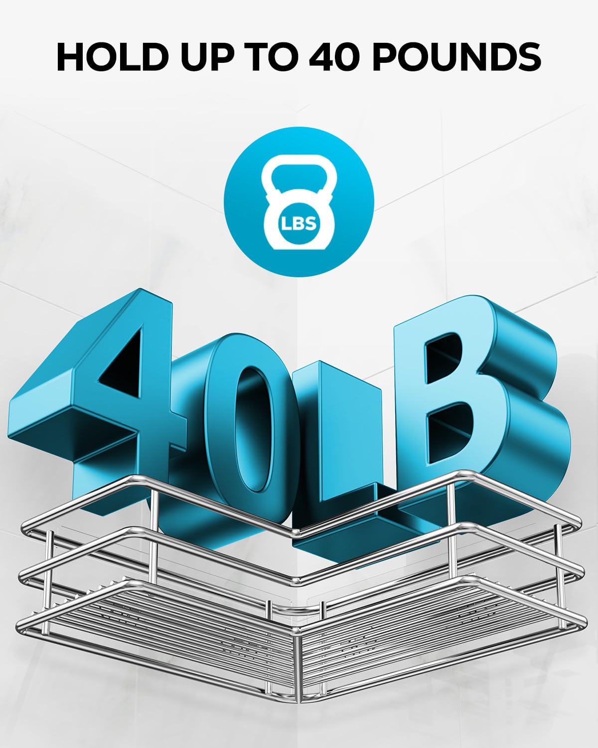 - Heavy-Duty: The secure adhesive design supports up to 40 pounds, holding all your bathroom essentials without drilling.