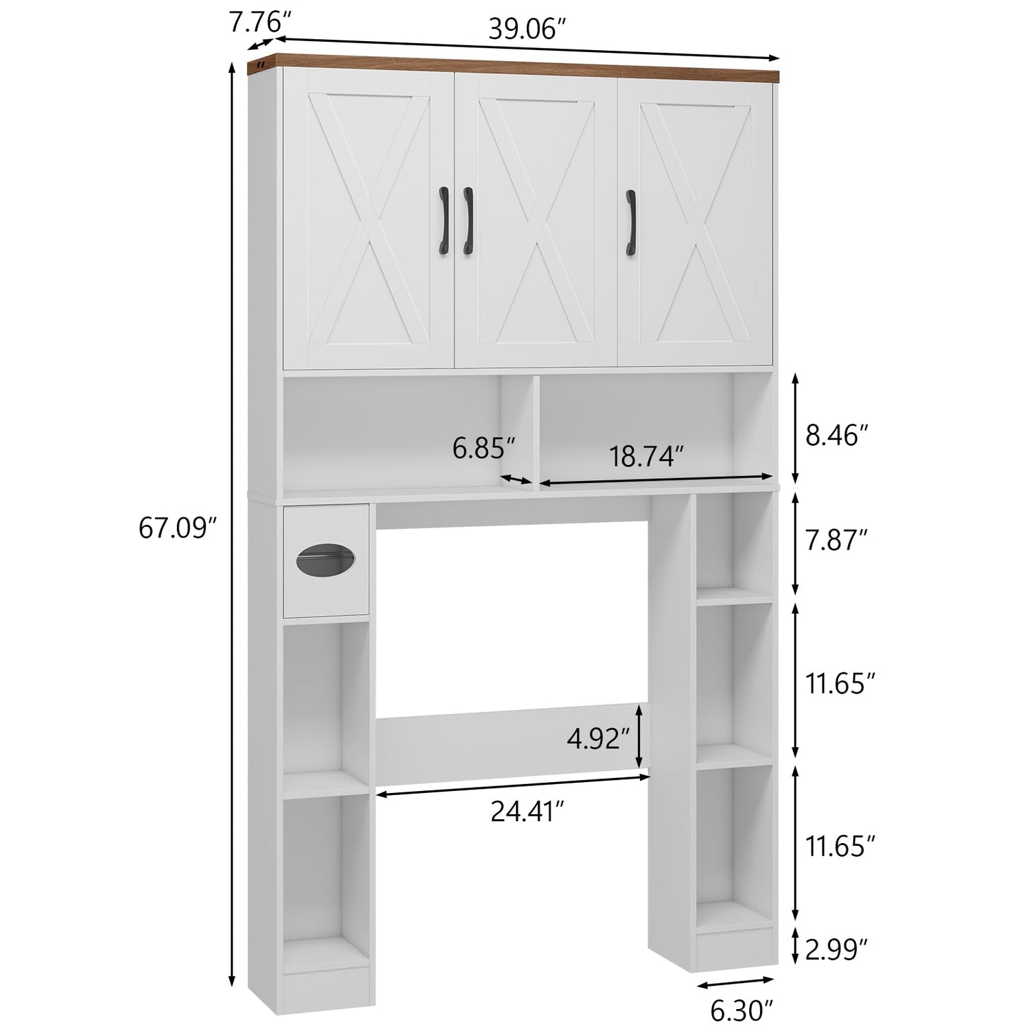 Over The Toilet Storage Cabinet, Farmhouse Toilet Cabinet Rack with 3 Barn Doors, Space Saving Bathroom Organizer with Shelves, Toilet Paper Holder and Towel Rack for Bathroom,Restroom,Laundry, White
