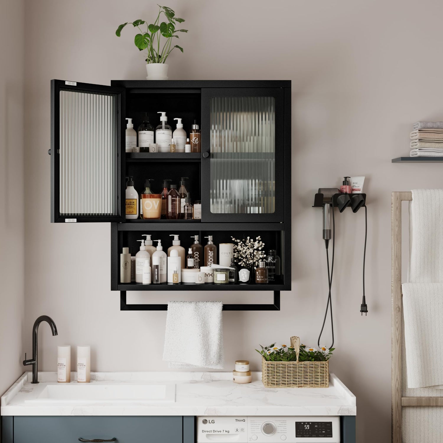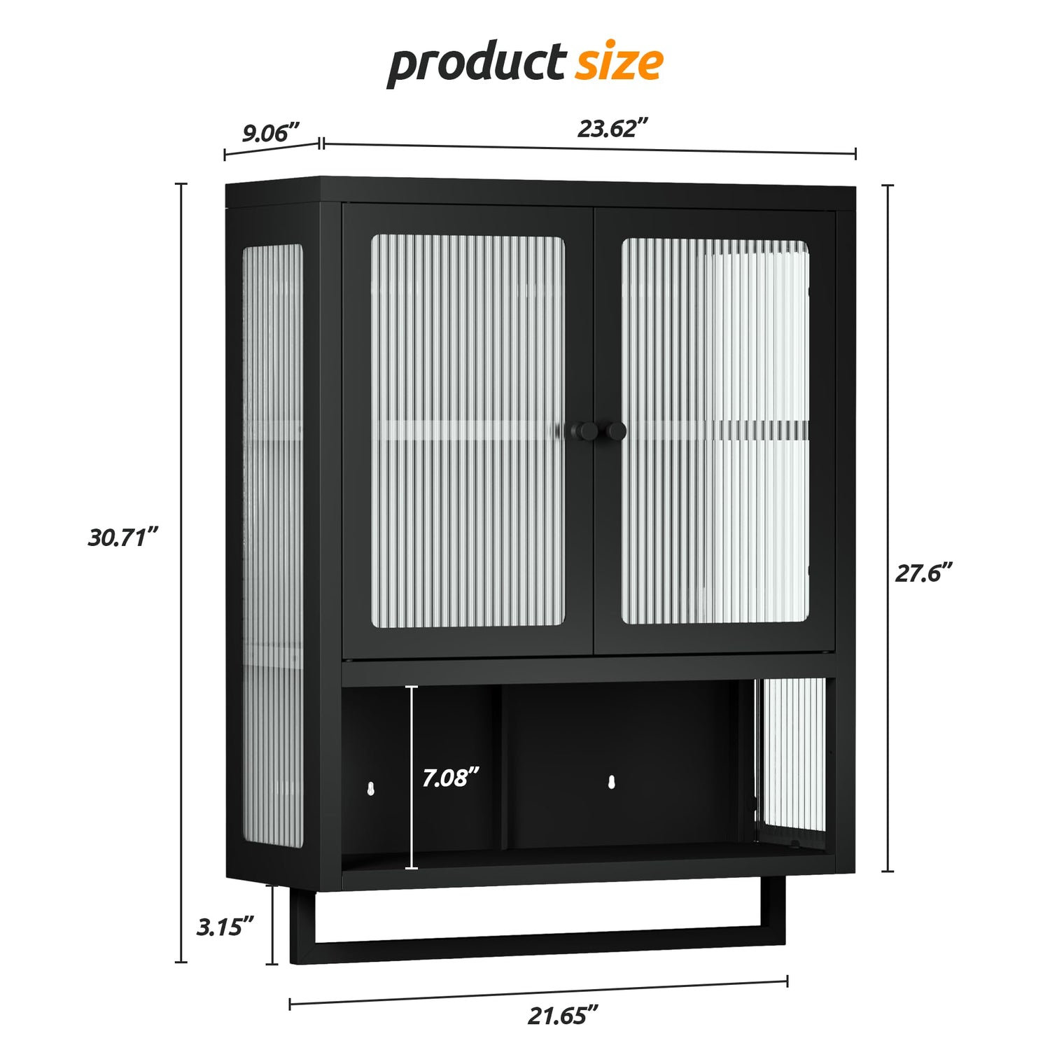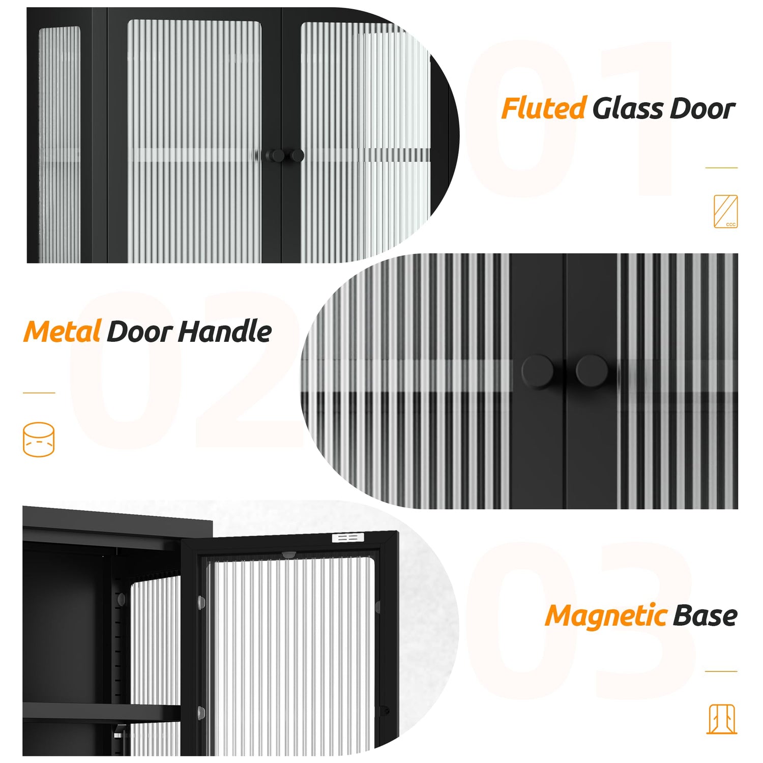 - Modern and Elegant Design: The classic black finish adds an elegant touch to your decor, while the fluted glass door design offers excellent light transmission without being see-through. This creates a modern and sophisticated look that seamlessly blends with any room style or decor.