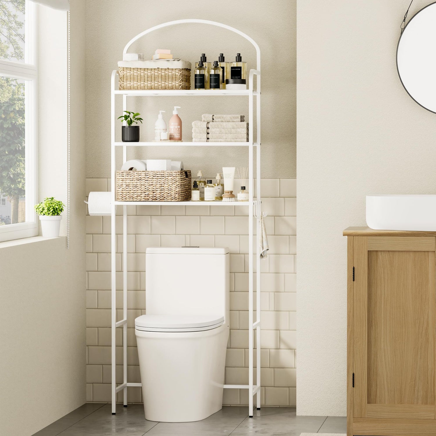 • Space-Saving Solution: Perfect for small bathrooms or apartments, this freestanding storage unit utilizes the often-unused area above the toilet, helping you maximize every inch of space.