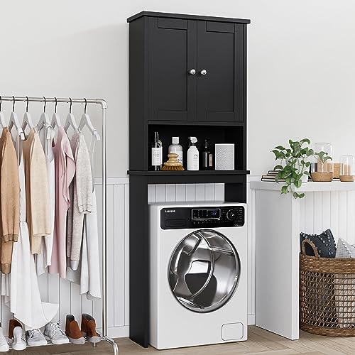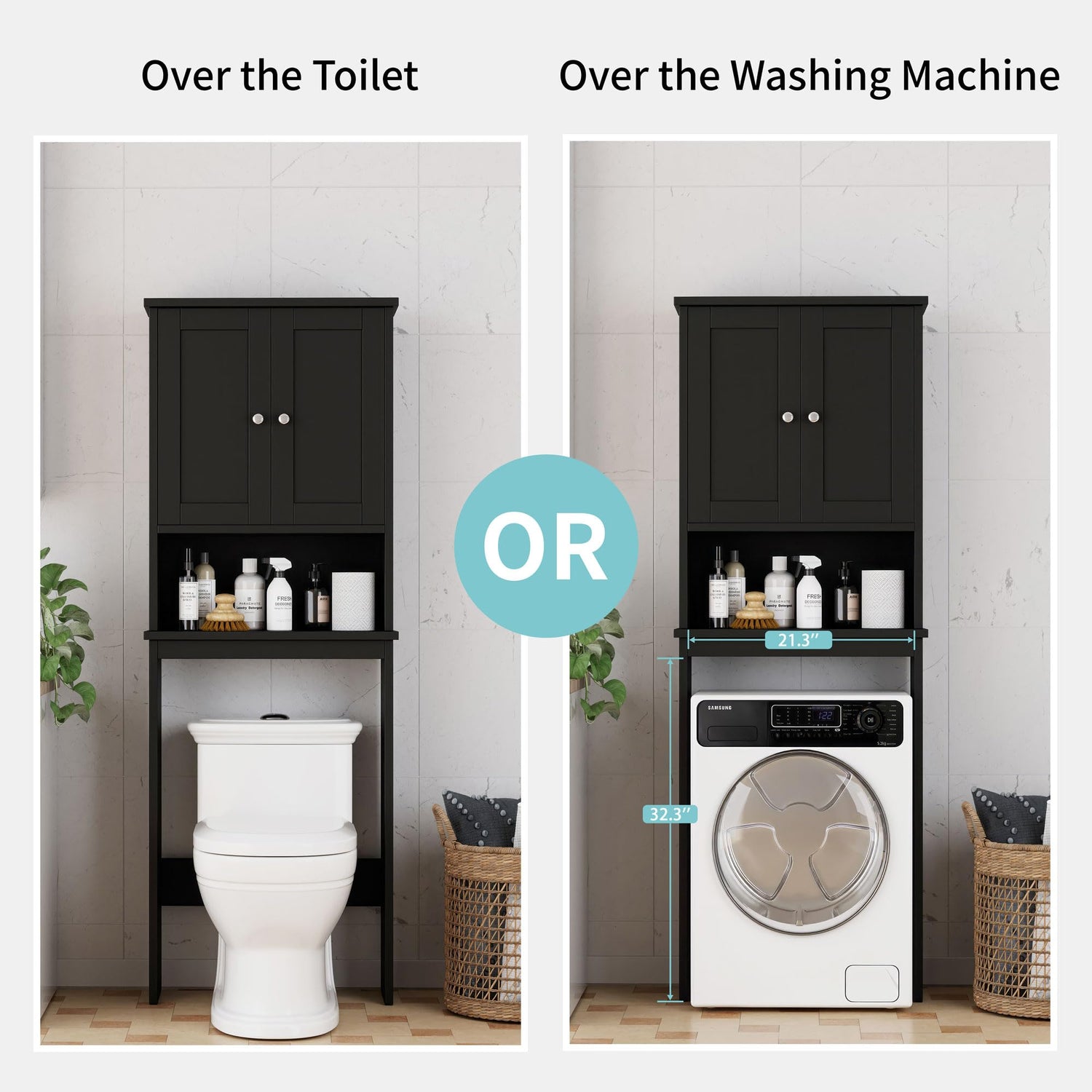 Shintenchi Over The Toilet Storage Cabinet, Bathroom Shelf Organizer with Anti-Tip Device Small Freestanding Space Saver with Adjustable Shelf,Black