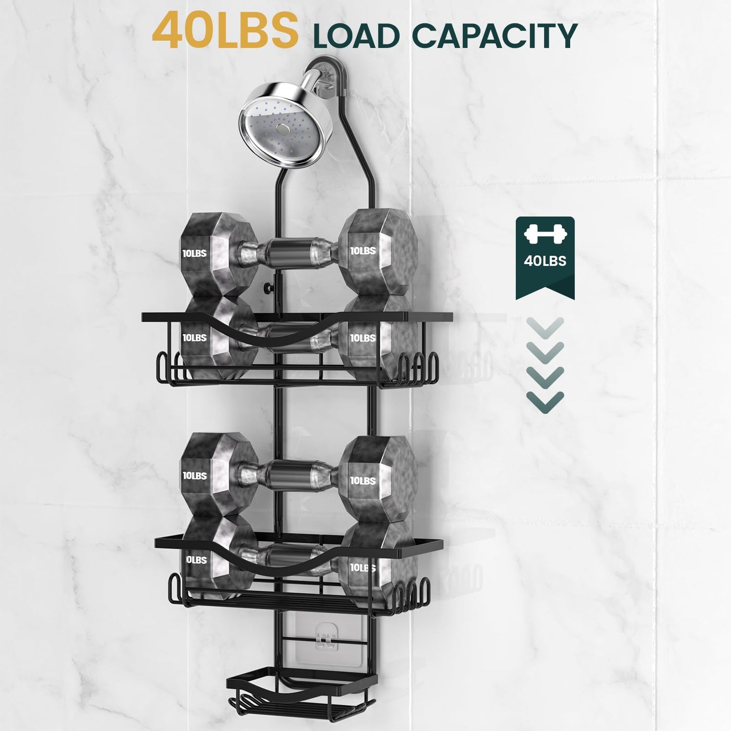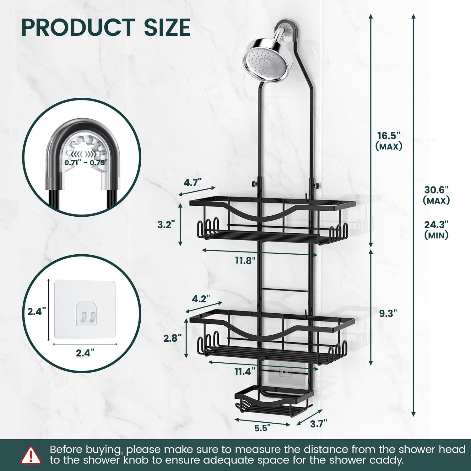 • 【Adjustable Shower Caddy】Streamline your shower organization with the shower caddy hanging featuring adjustable height settings. Tailor the height of the black shower caddy hanging to perfectly suit your shower space, whether you prefer easy-to-reach toiletries or extra room for taller bottles. The adaptable shower organizer effortlessly conforms to your needs for a personalized shower experience.