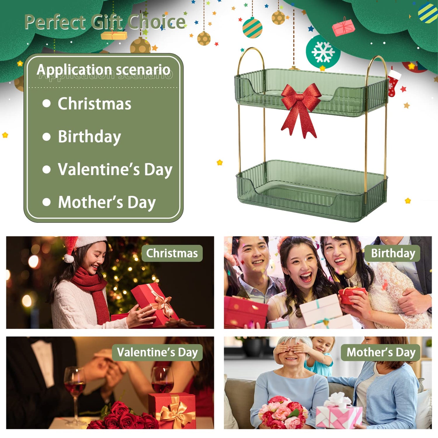 shuang qing Bathroom Counter Organizer Countertop Storage, Cosmetics Skincare Shelf, Makeup Organizer Perfume for Dresser Vanity Tray, Spice Rack for Kitchen(2 Tier-Green)