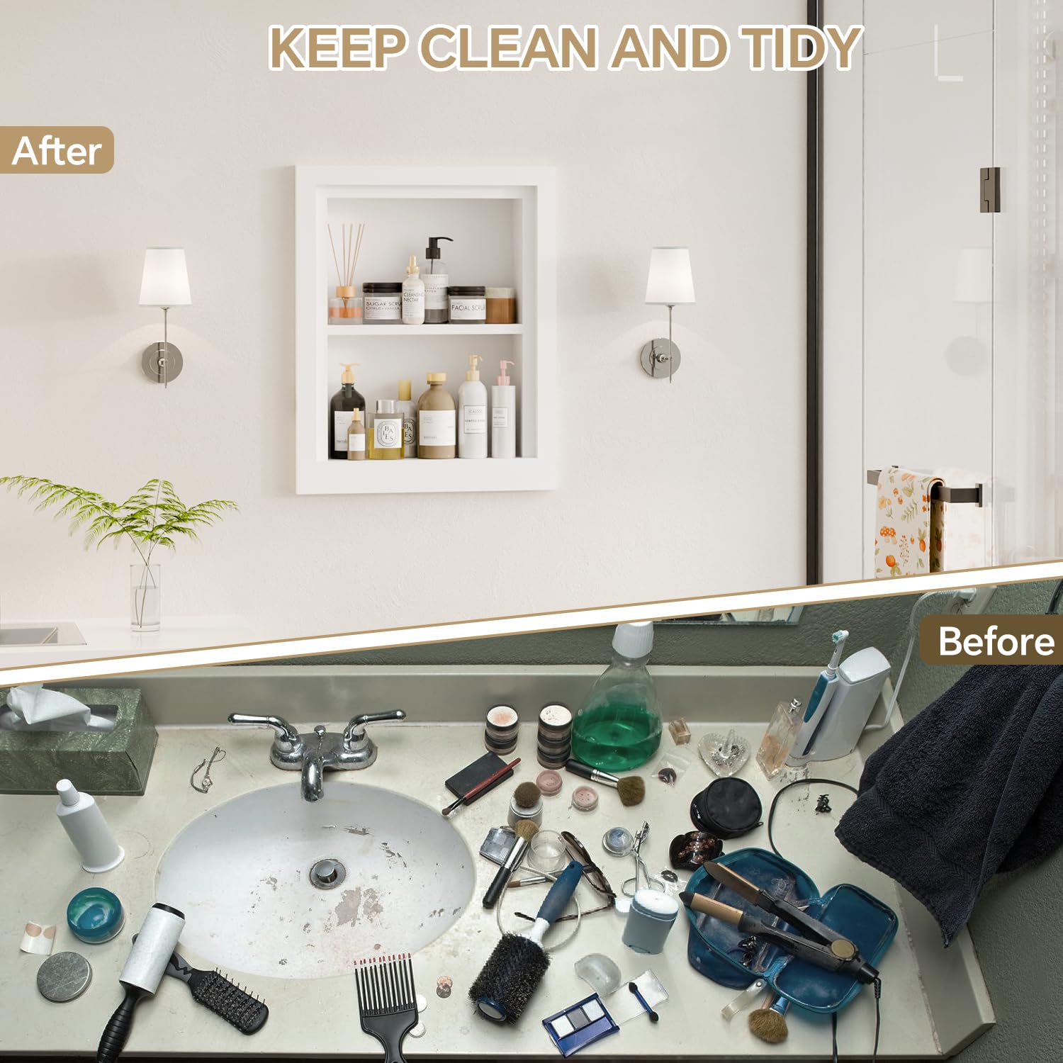 - 【Space-Saving Design, Expanding Storage Capacity】The recessed design helps save valuable external space, making your bathroom or room feel more spacious, while also offering additional storage for your items.