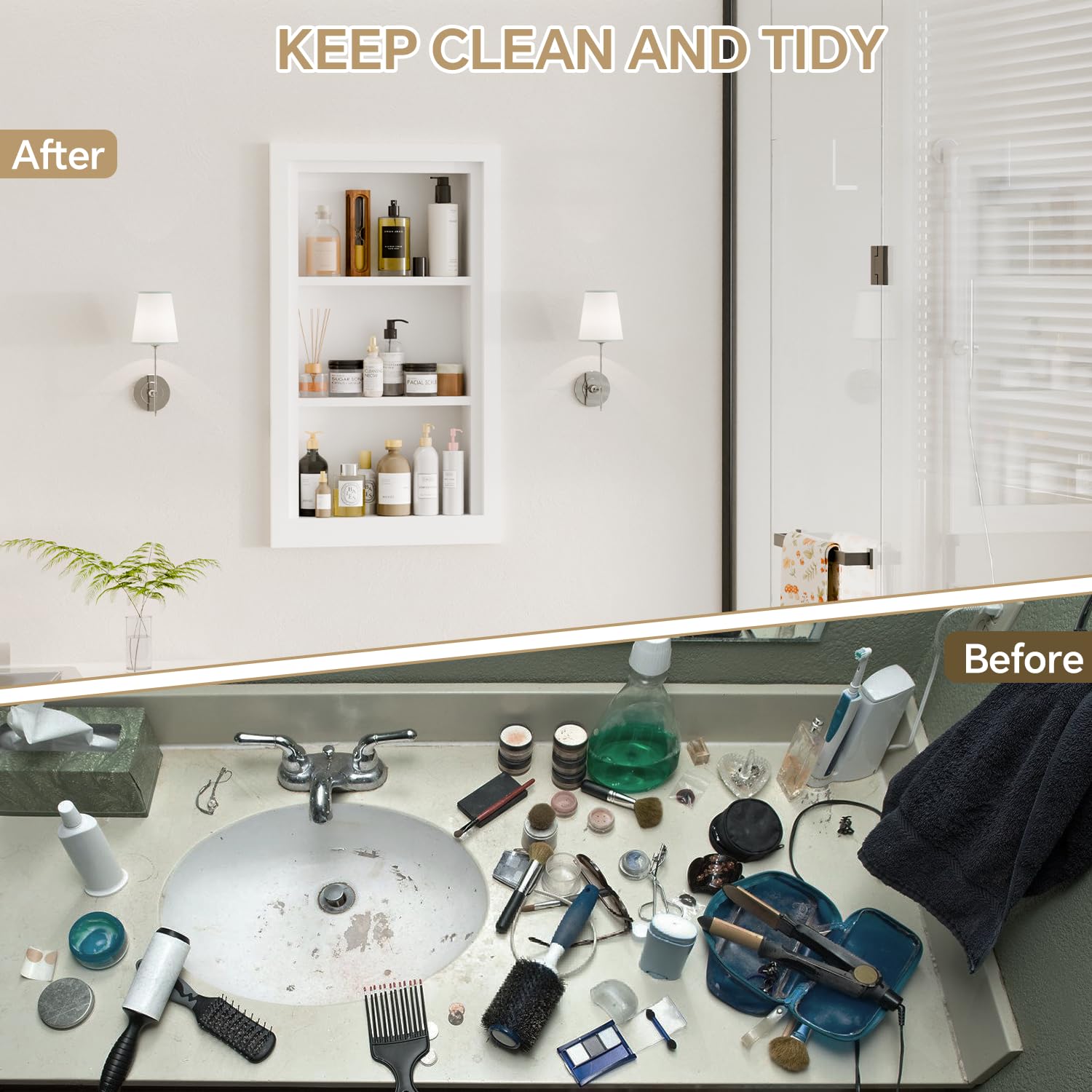 - 【Space-Saving Design, Expanding Storage Capacity】The recessed design helps save valuable external space, making your bathroom or room feel more spacious, while also offering additional storage for your items.