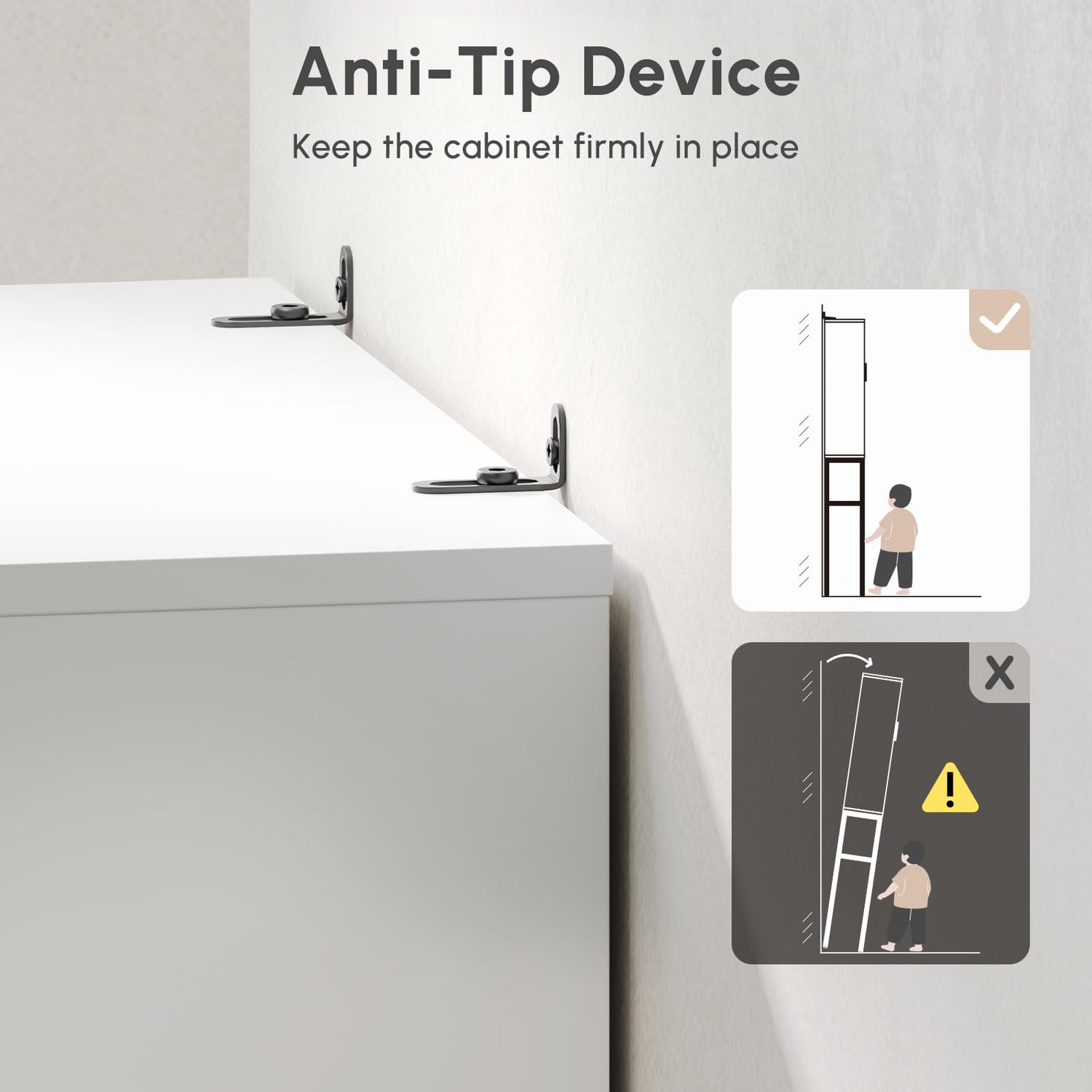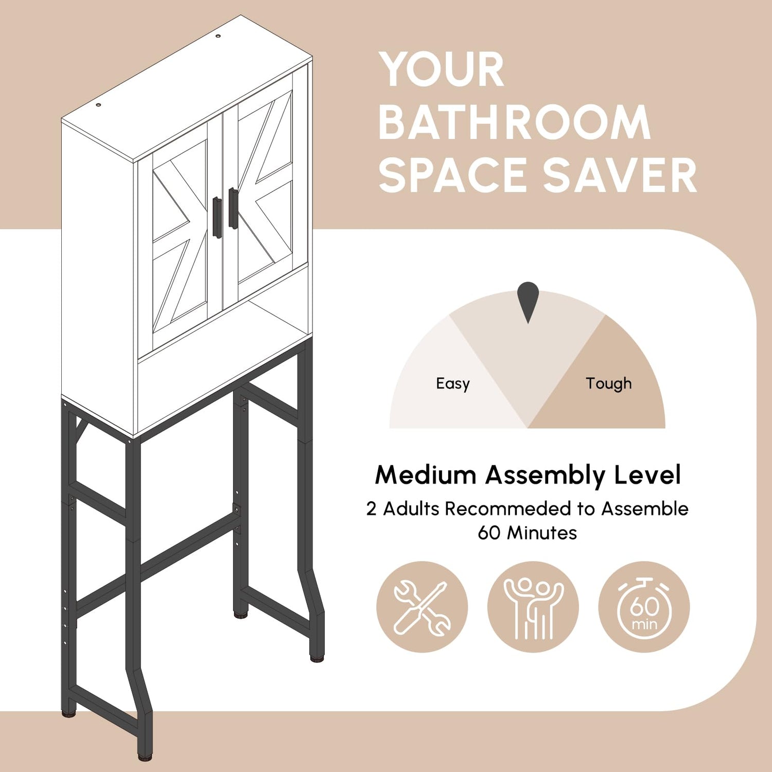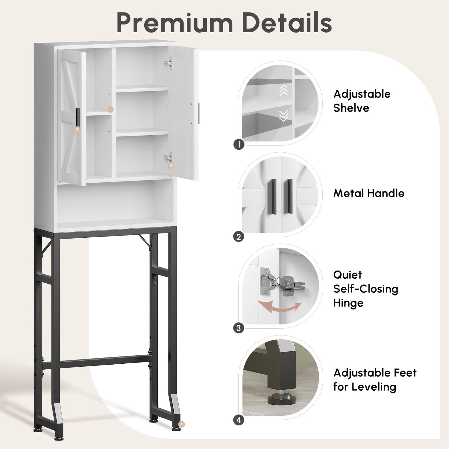 - 【Sturdy & Secure】 Built with a 1" wide rust-proof metal tube and reinforced crossbars, this standing toilet storage cabinet offers excellent stability. It also comes with 4 adjustable leveling feet and 2 anti-tip devices for added safety, keeping the unit firmly in place