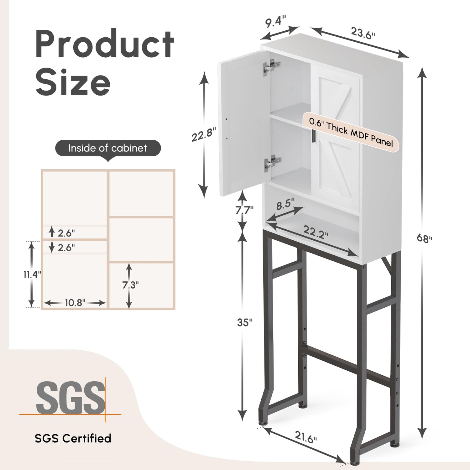 - 【Quality Materials】 Made of 0.6" recyclable P2-grade board that is SGS-certified, this over the toilet shelf is finished with a melamine surface that resists wear, cleans easily, and ensures long-lasting durability and sustainability in the bathroom