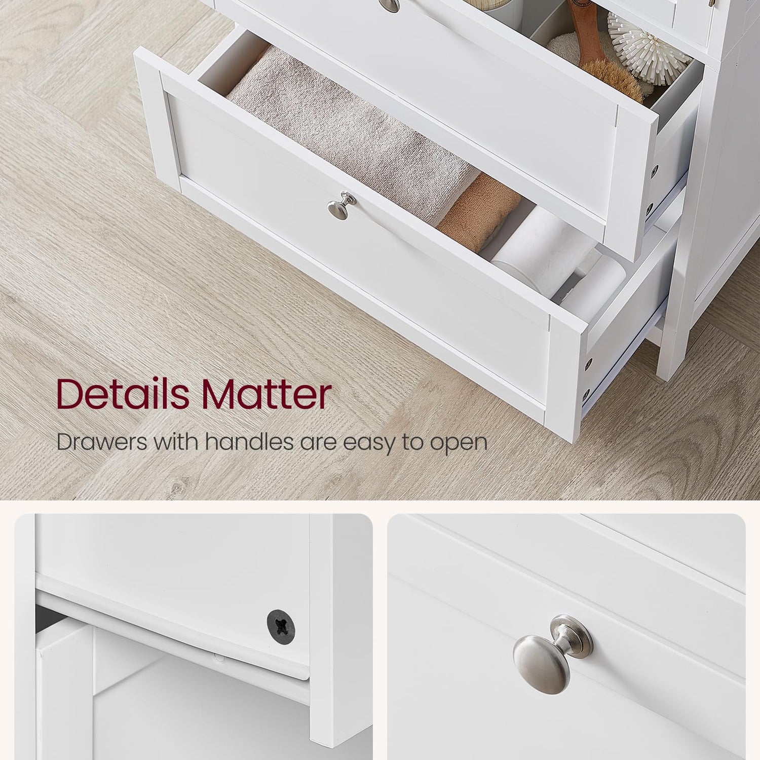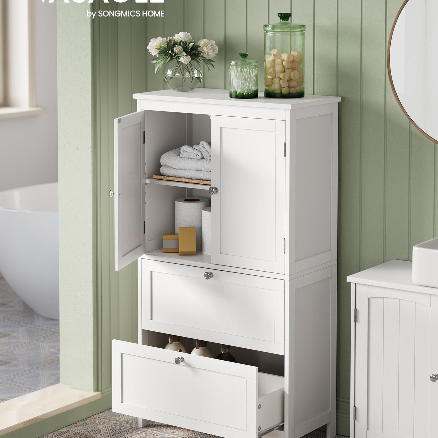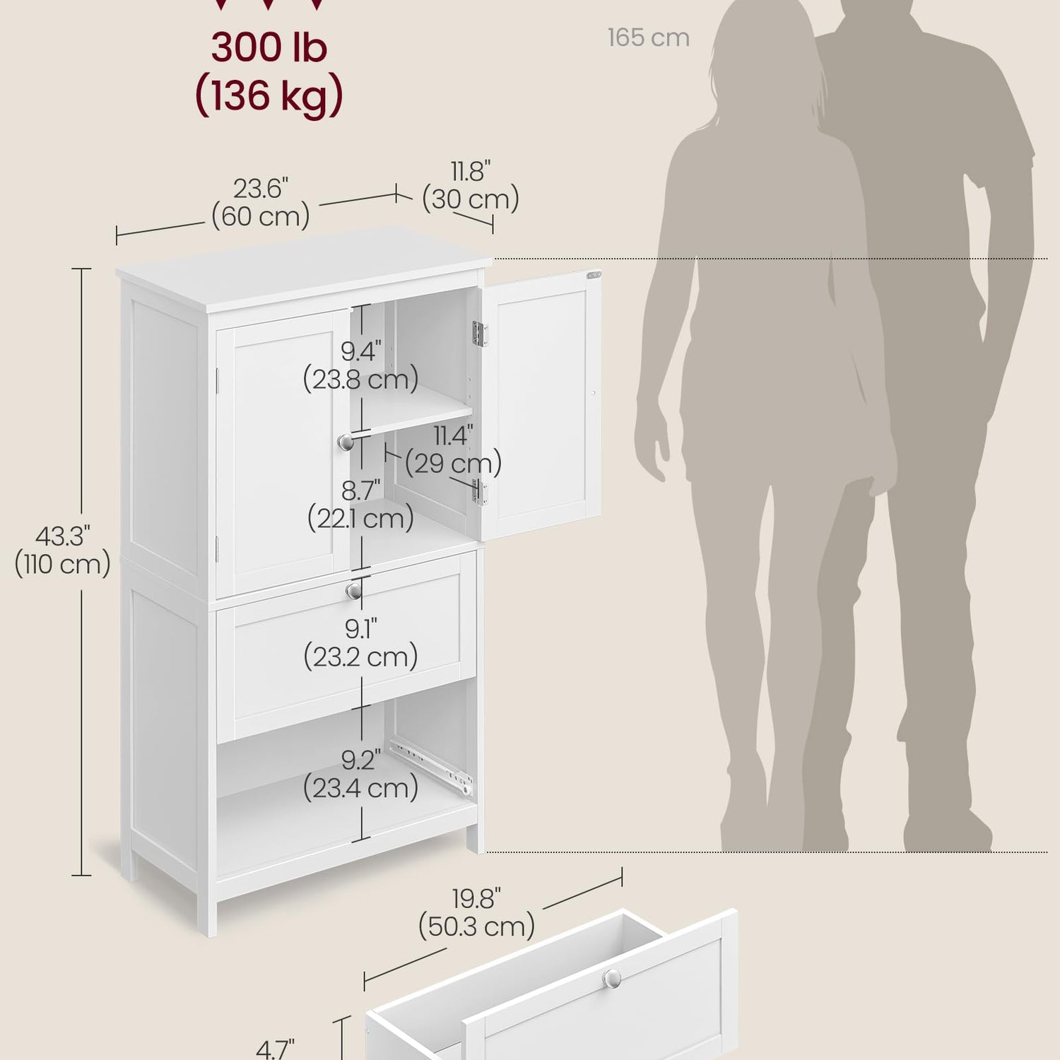 VASAGLE Bathroom Floor Storage Cabinet, Bathroom Storage Unit, Freestanding Cabinet with 2 Drawers and 2 Doors, Adjustable Shelf, 11.8 x 23.6 x 43.3 Inches, White UBBC551P31