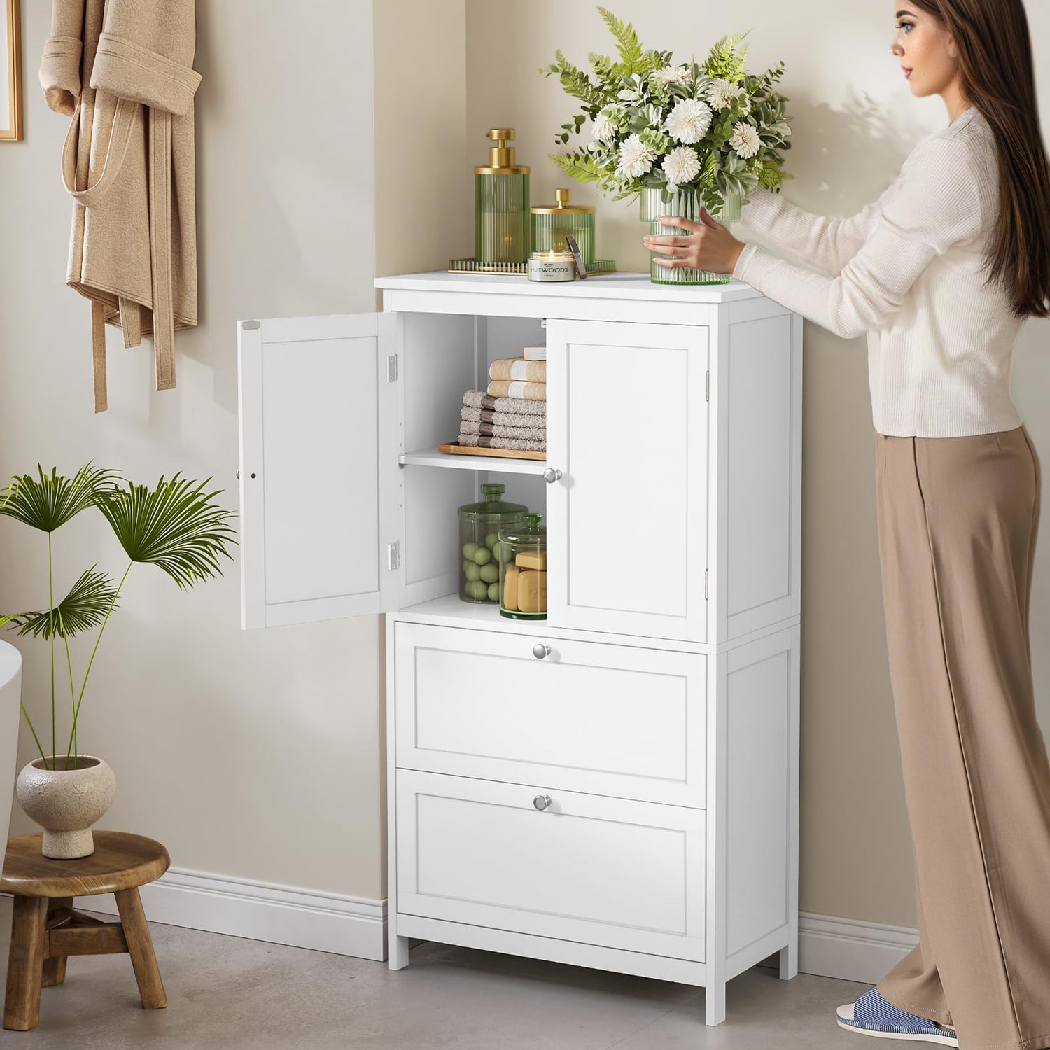 - [Plenty of Storage] This bathroom cabinet features a top cabinet and 2 roomy drawers to provide ample space for your hairdryer, towels, cosmetics, shower items, and more