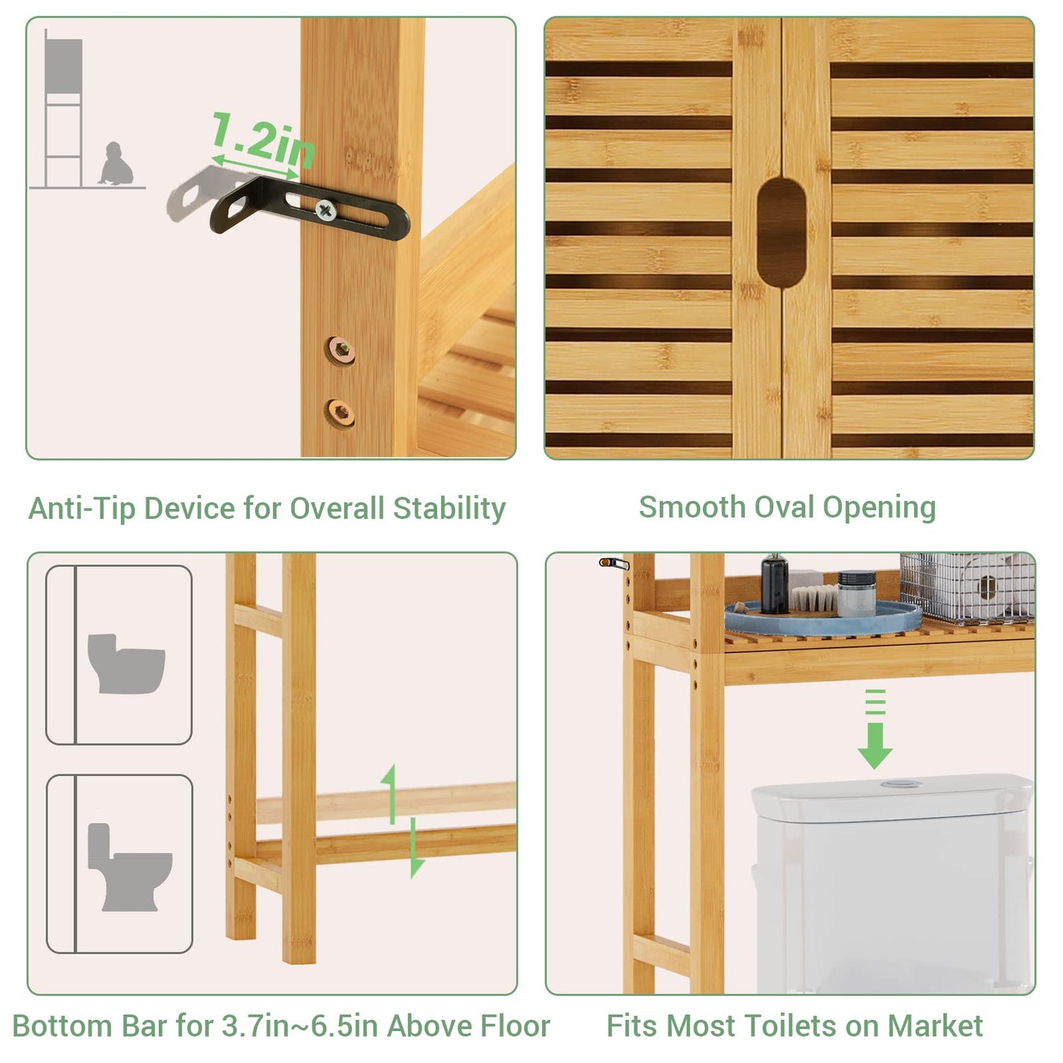 Elevate your bathroom with the VIAGDO Natural Bamboo Over The Toilet Storage Cabinet—a perfect fusion of style, durability, and space-efficient design.