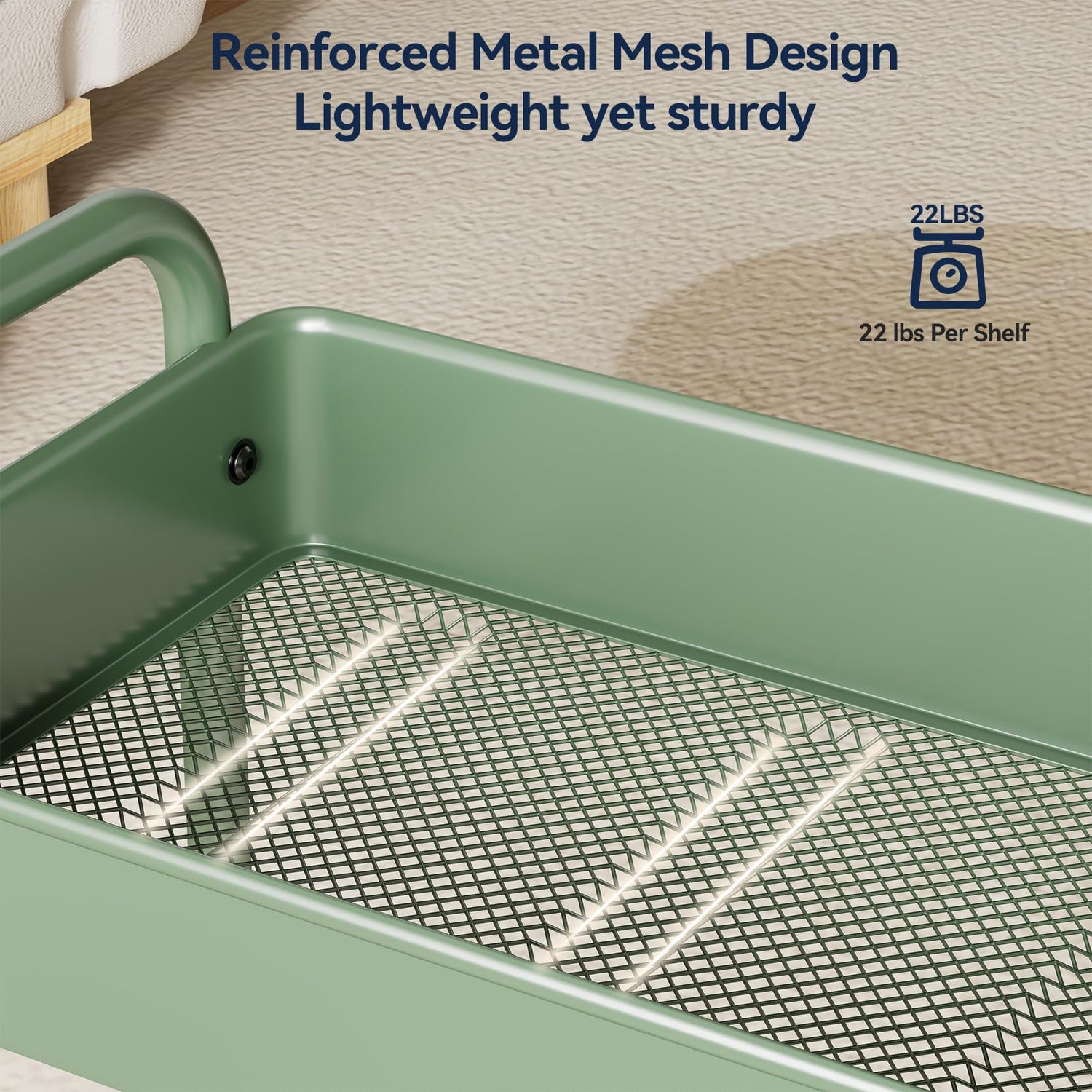 - All-Carbon Steel, Sturdy and Durable: The 3 tier rolling cart is entirely made from solid carbon steel, with the bottom mesh of each basket reinforced with strengthening ribs. This makes the carts with wheels both lightweight and robust,per shelf weight capacity of up to 22lbs