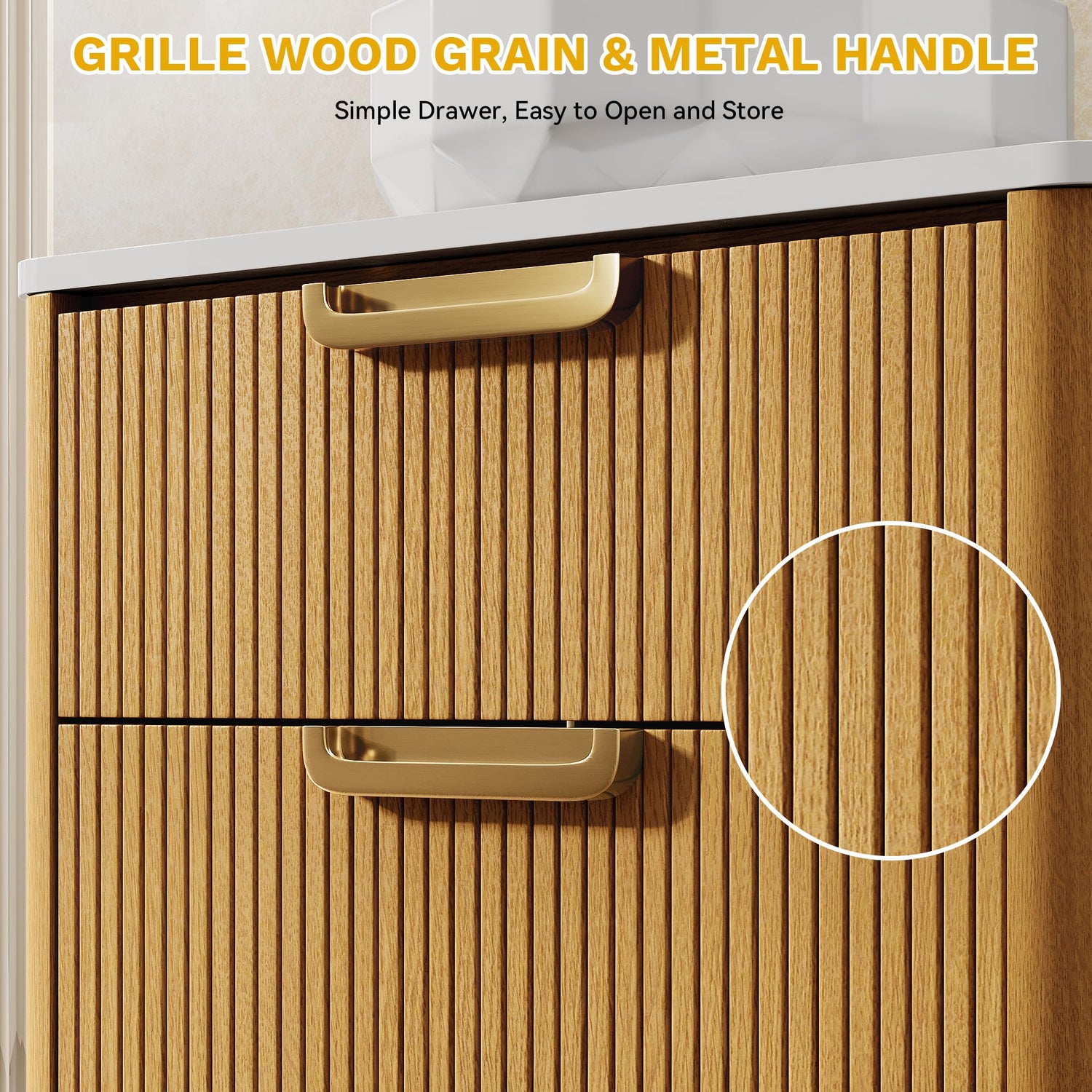 - Diamond-cut Ceramic Sink: This floating bathroom vanity features a diamond-cut ceramic sink, which not only looks elegant and unique but is also scratch-resistant, heat-resistant, and easy to clean.