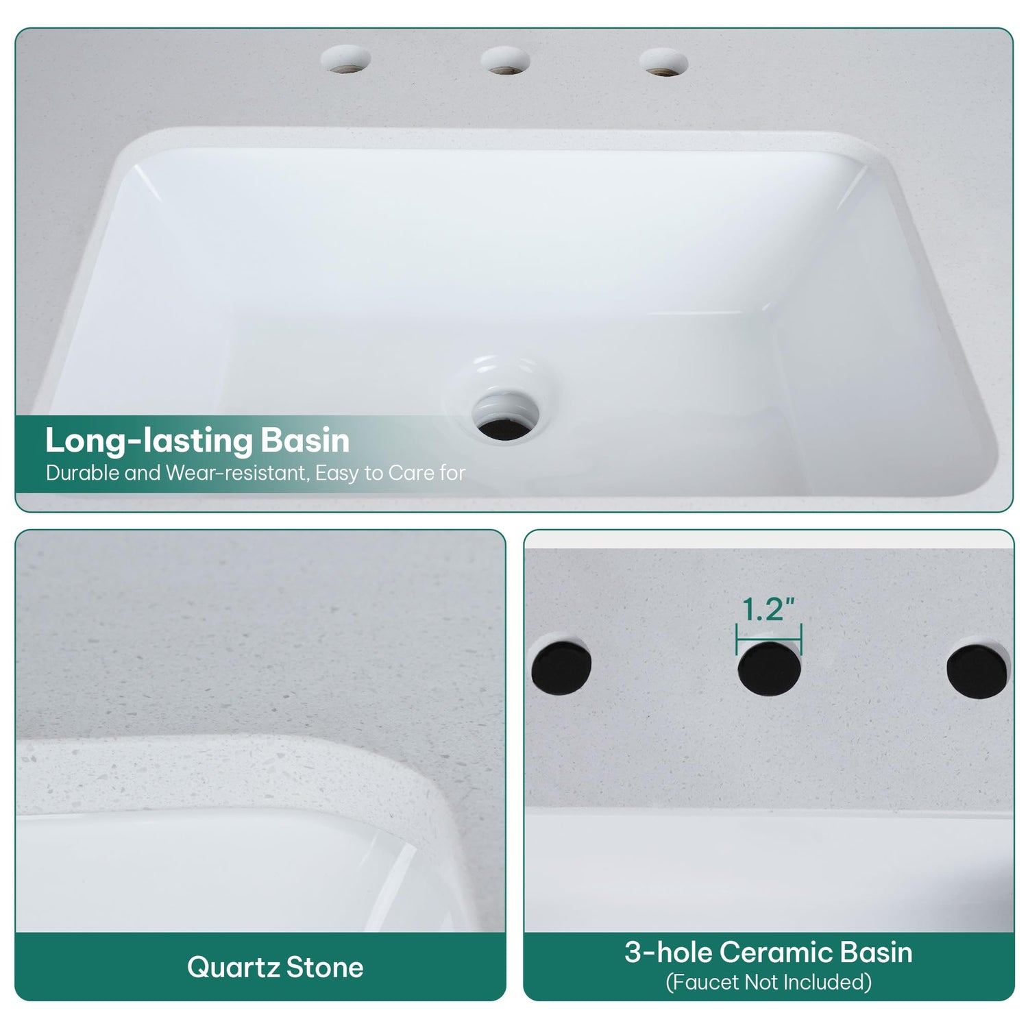 - Seamless White Quartz Countertop: Get a stunning, scratch-proof surface on this wall-mounted vanity! High-density quartz is durable, super easy to clean, and built to last – the choice that eliminates your worries.