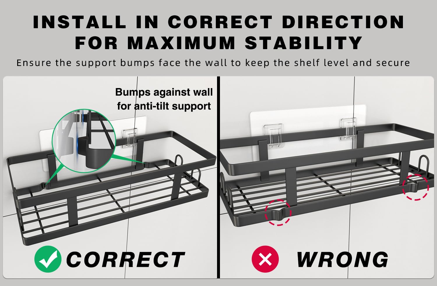- Stronger Adhesive:shower shelf come with ultra-powerful adhesive tapes that can hold up to 30 lb,it holds up well over time, even in humid conditions