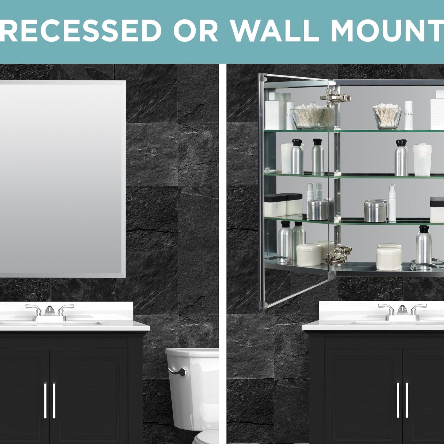 - Versatile Bathroom Fit: Ideal medicine cabinet for small or medium bathrooms, powder rooms, primary baths, or as a bathroom wall cabinet above a vanity. Made for recessed or surface mount installation for easy integration into any bathroom cabinet setup.
