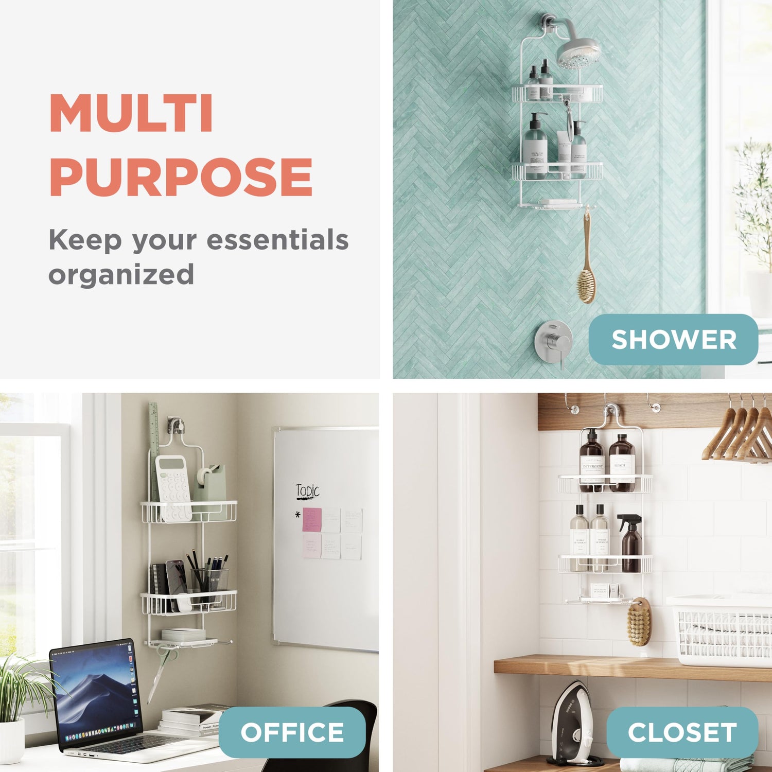 • Over Shower Head Fit: Fits securely as an over the shower head caddy, hanging on any standard showerhead with its patented non-slip LockTop mechanism for versatile bathroom storage—ideal for keeping bath essentials organized and accessible.