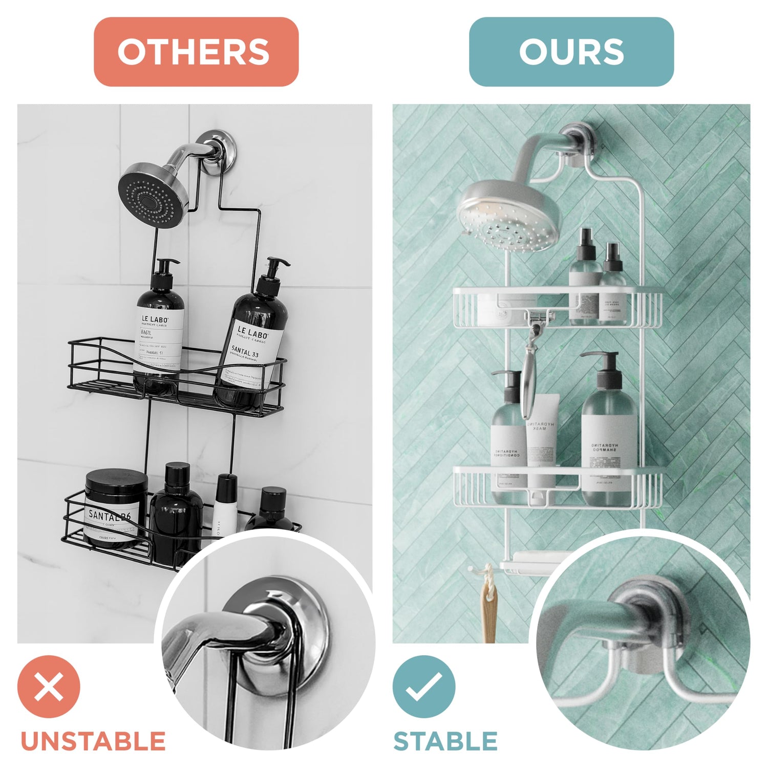 • Easy Tool-Free Install: Features non-slip LockTop mechanism for secure, tool-free installation over the shower head. Includes hex key to make this hanging shower caddy setup fast, stable, and wobble-free. Product dimensions: 4.8"D x 11"W x 24.4"H.