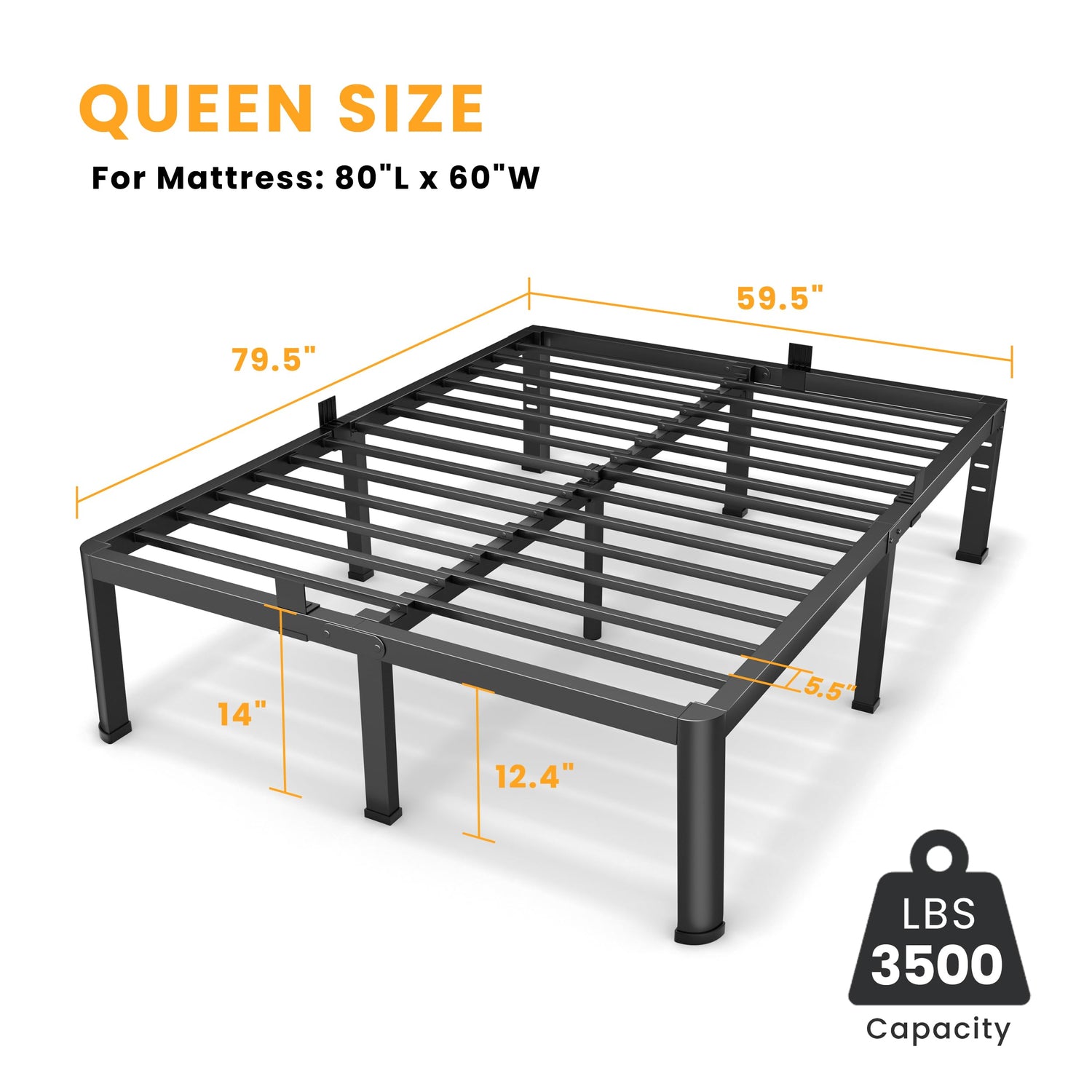 14 Inch Queen Bed Frame, Metal Platform Bed Frame with Round Corner Legs, 3500 lbs Heavy Duty Steel Slats Support, No Box Spring Needed, Noise Free, Easy Assembly, Black