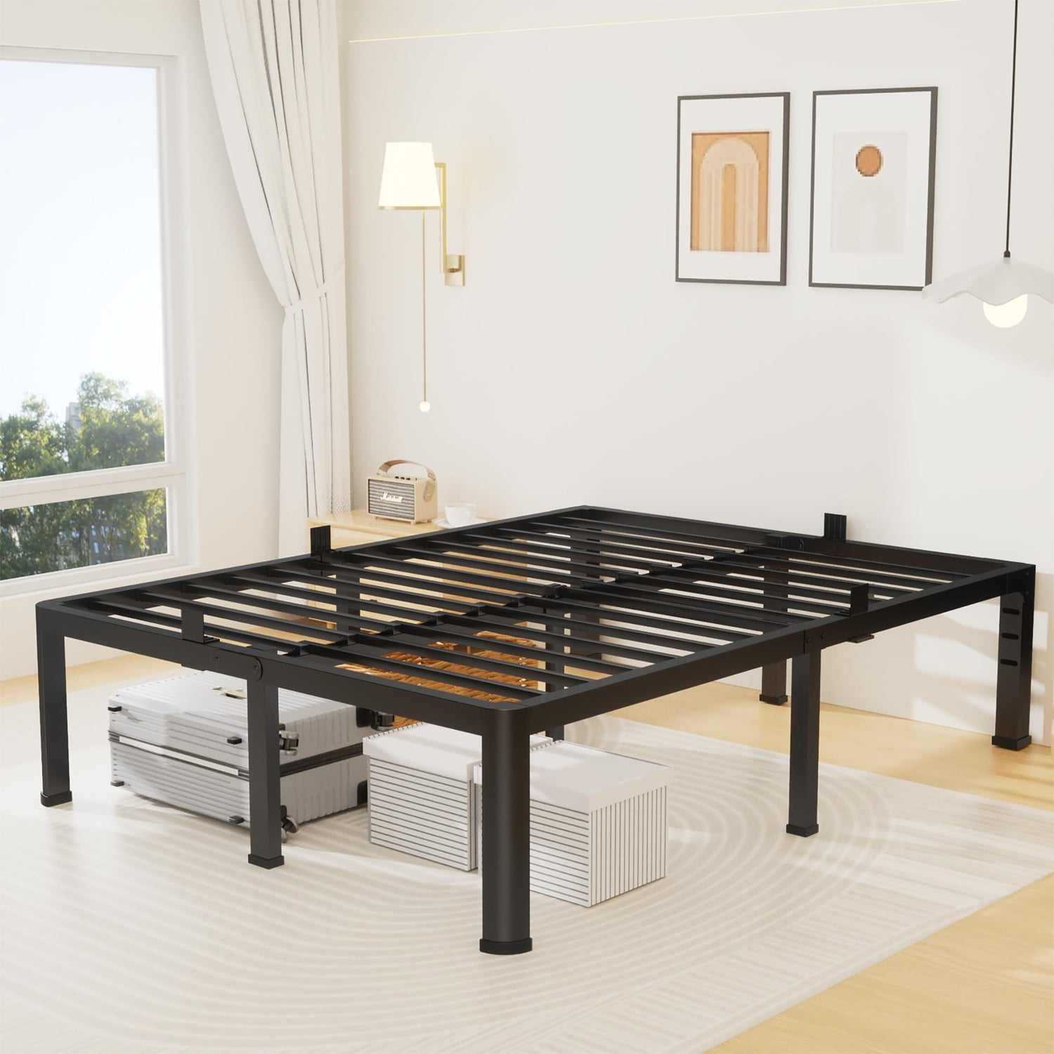 - Under-bed Storage Space: The 14 inch high bed frame provides a 12.4 inch under-bed storage space, allowing you to conveniently store suitcases, boxes, clothes, and shoes. The greater space utilization makes it easier for you to maintain room tidiness.