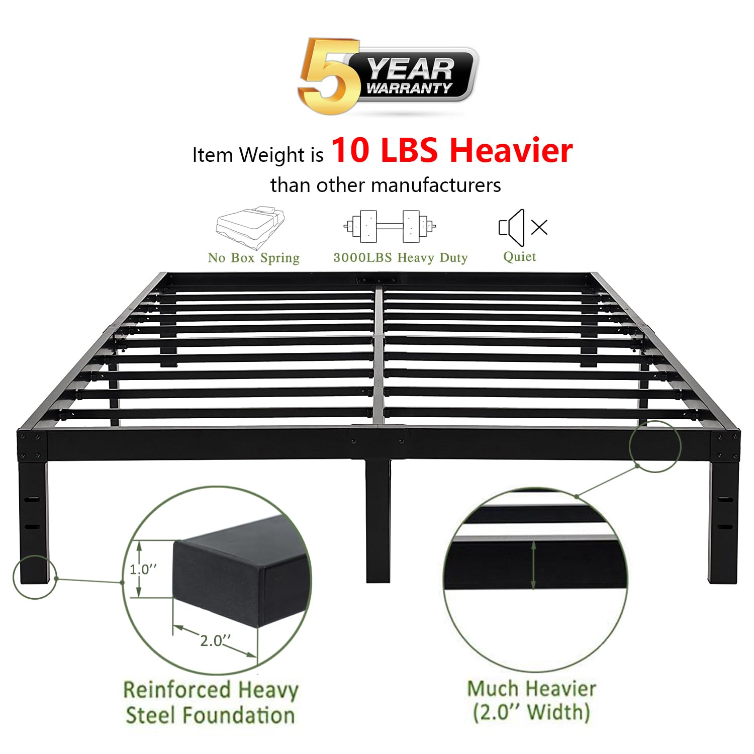 • ✔ STRUCTURE:10 pounds heavier than other manufacturers. Reinforced Steel Slats Support, Seamlessly Welded Tightly Structure, makes the whole frame more Safe & Sturdy, withstand 3000 pounds of static pressure and prevents structural twisting.