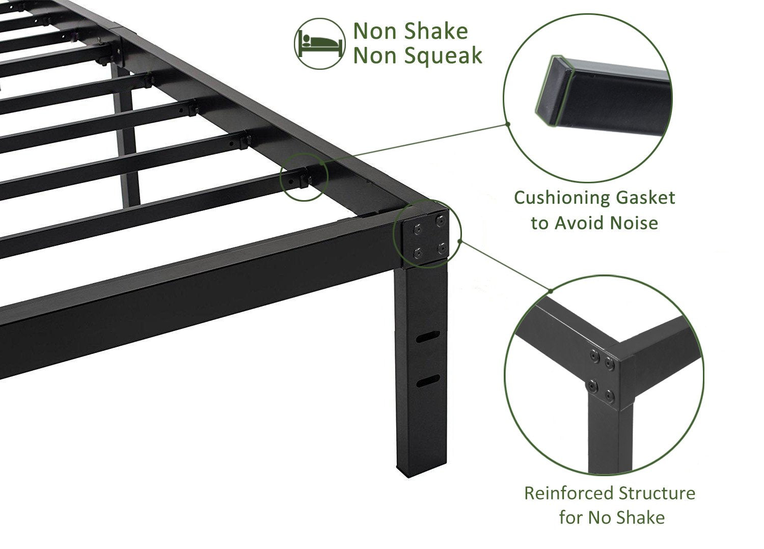 • ✔ NOISE FREE: Cushioning gasket is added to the steel frame for noise-free using; Reinforced leg structure and frame structure makes platform free from squeaking; No need of box Spring