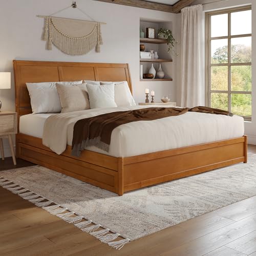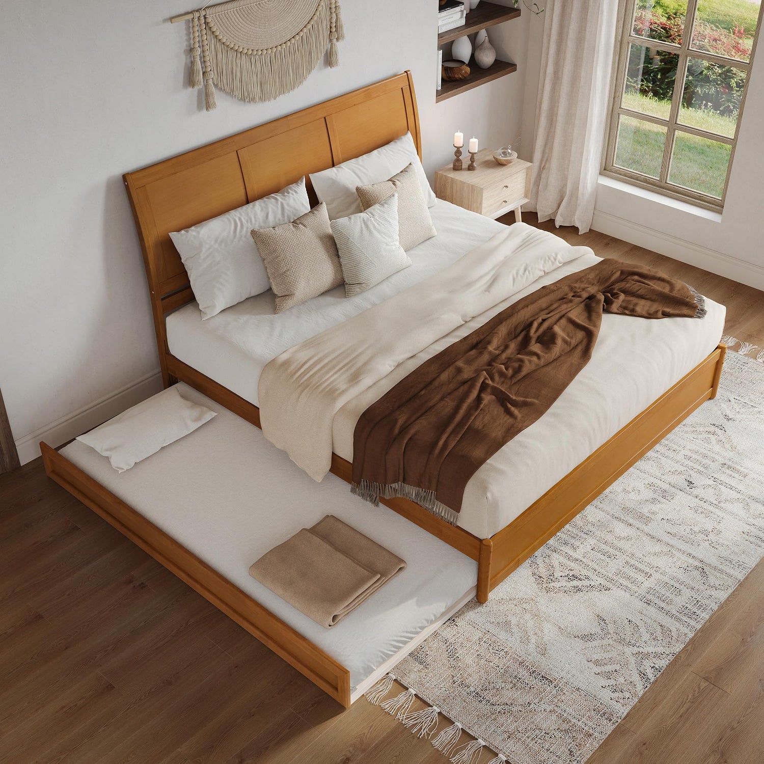 AFI, Andorra King Platform Bed with Panel Footboard & Twin XL Trundle, Light Toffee