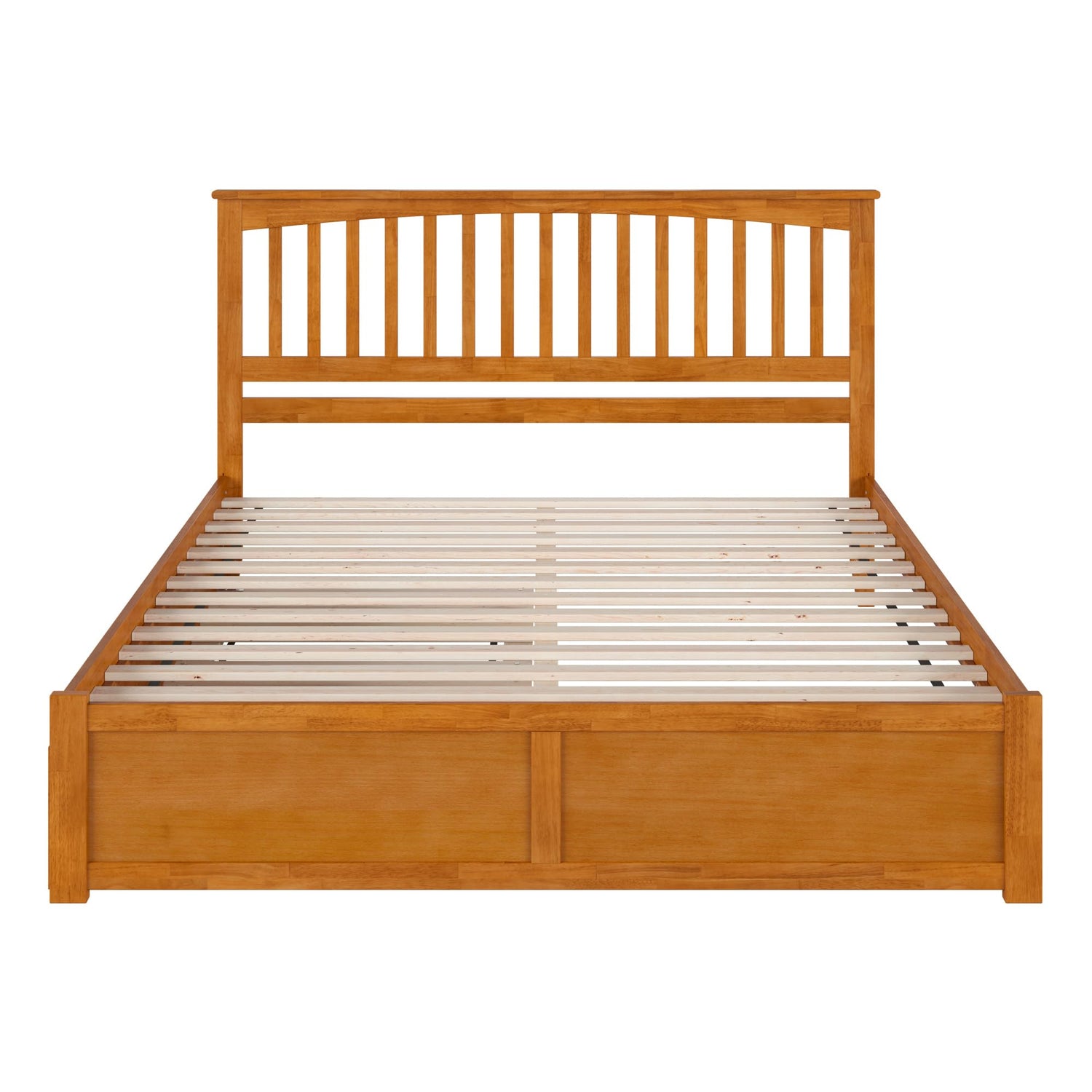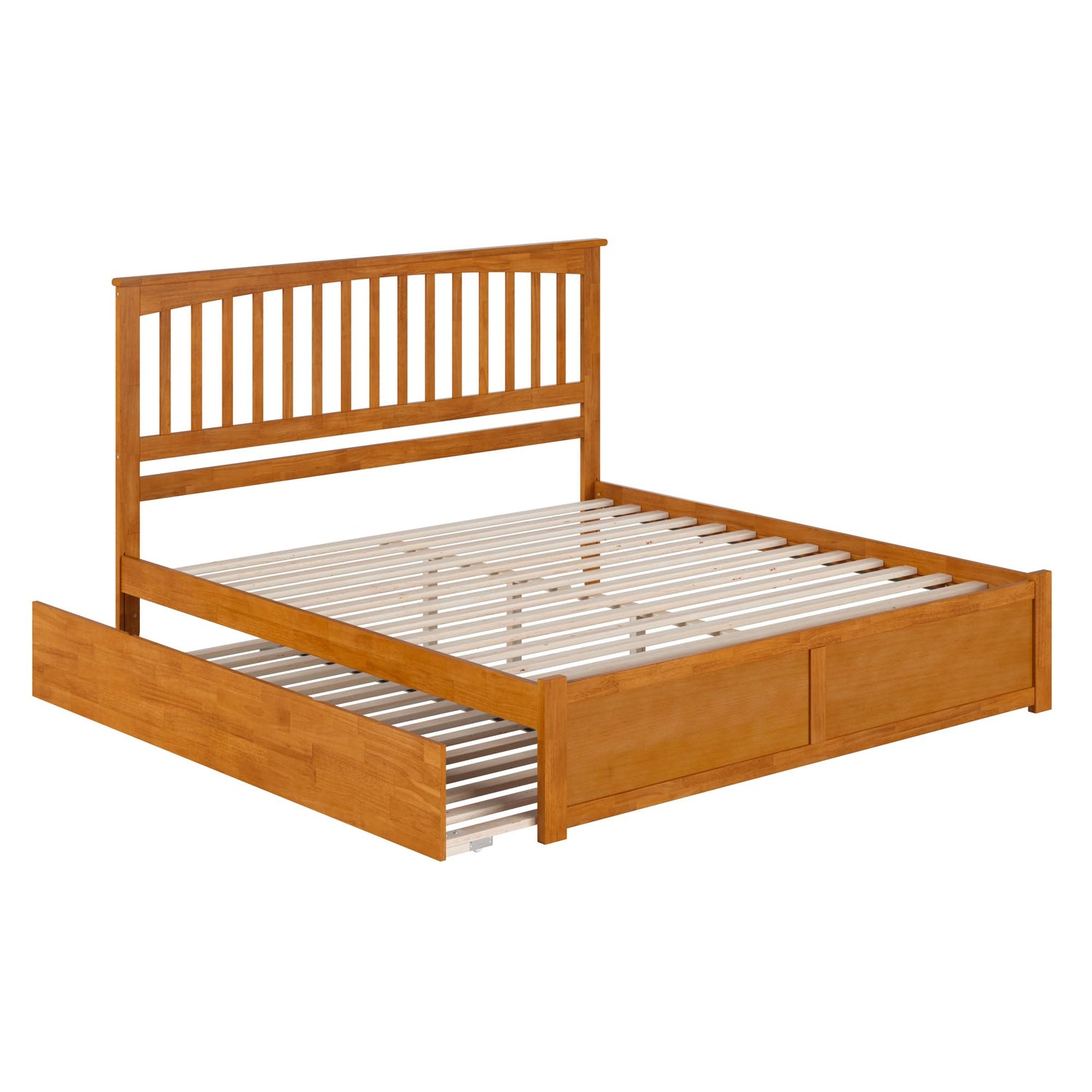 AFI Mission King Solid Wood Platform Bed with Footboard & Twin XL Trundle in Light Toffee