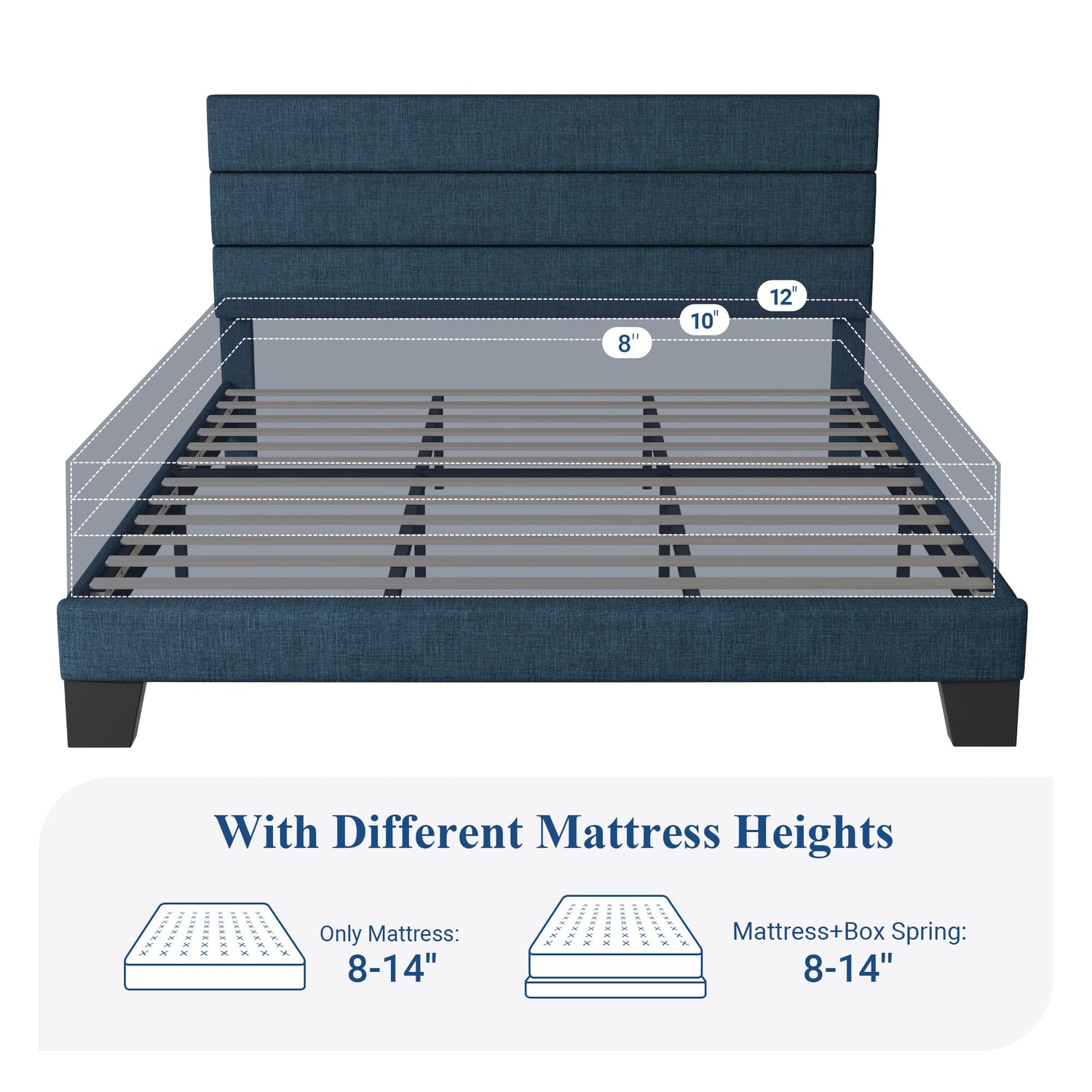 - Quick Assemble: Comes with clear instructions, easy to assemble in about an hour; bed frame fits snugly and holds together tightly; suitable for mattresses 8-16 inches thick