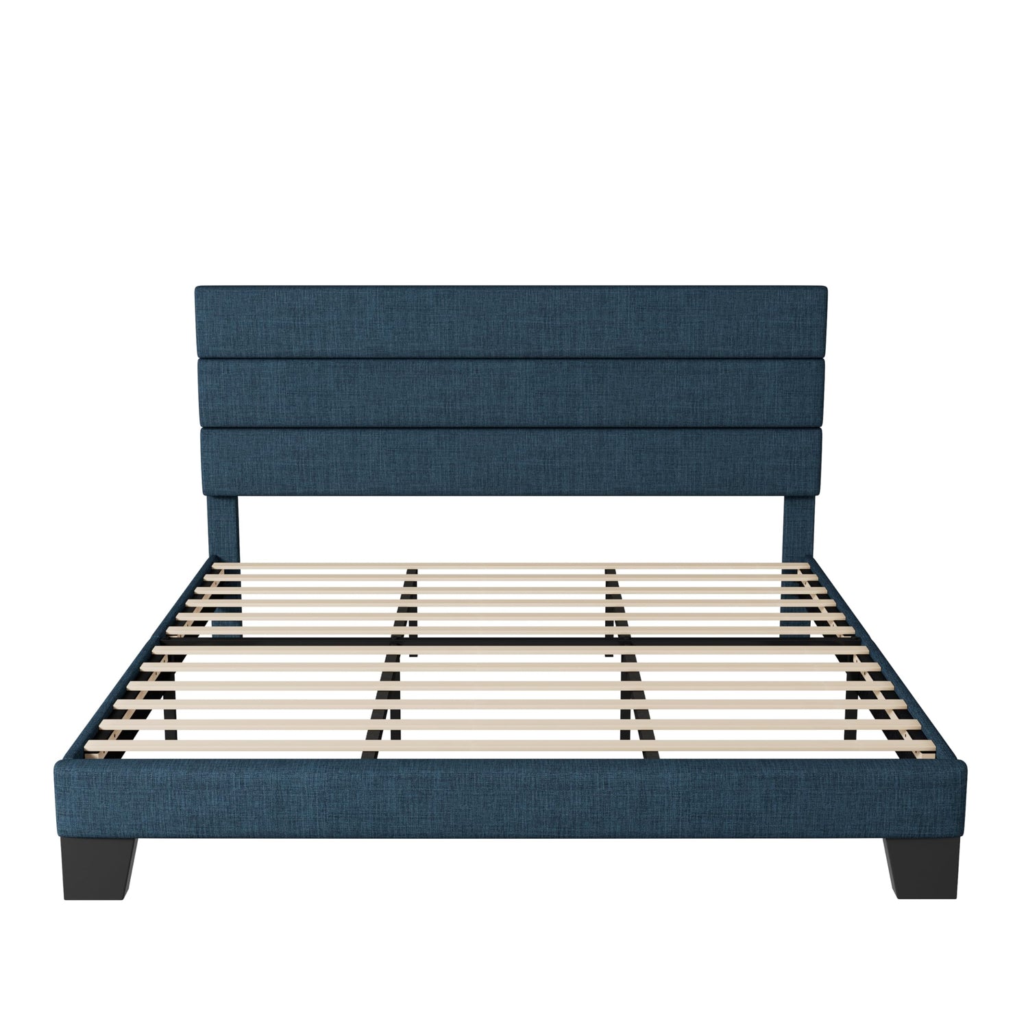 Allewie King Size Platform Bed Frame with Fabric Upholstered Headboard and Wooden Slats Support, Fully Upholstered Mattress Foundation/No Box Spring Needed/Easy Assembly, Navy Blue