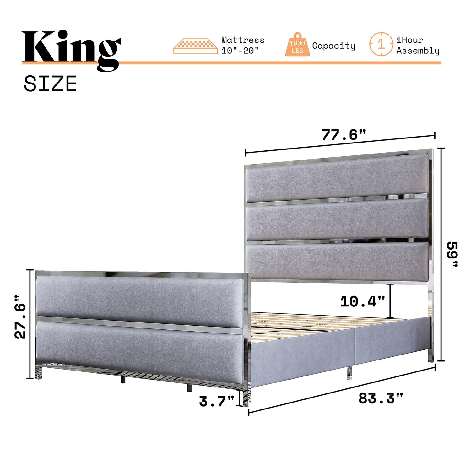 • Comfortable & Tall Headboard: The 59" Tall headboard with smooth lines, is filled with high elastic sponge internally. The king bed frame provides the most comfortable leaning experience for you.