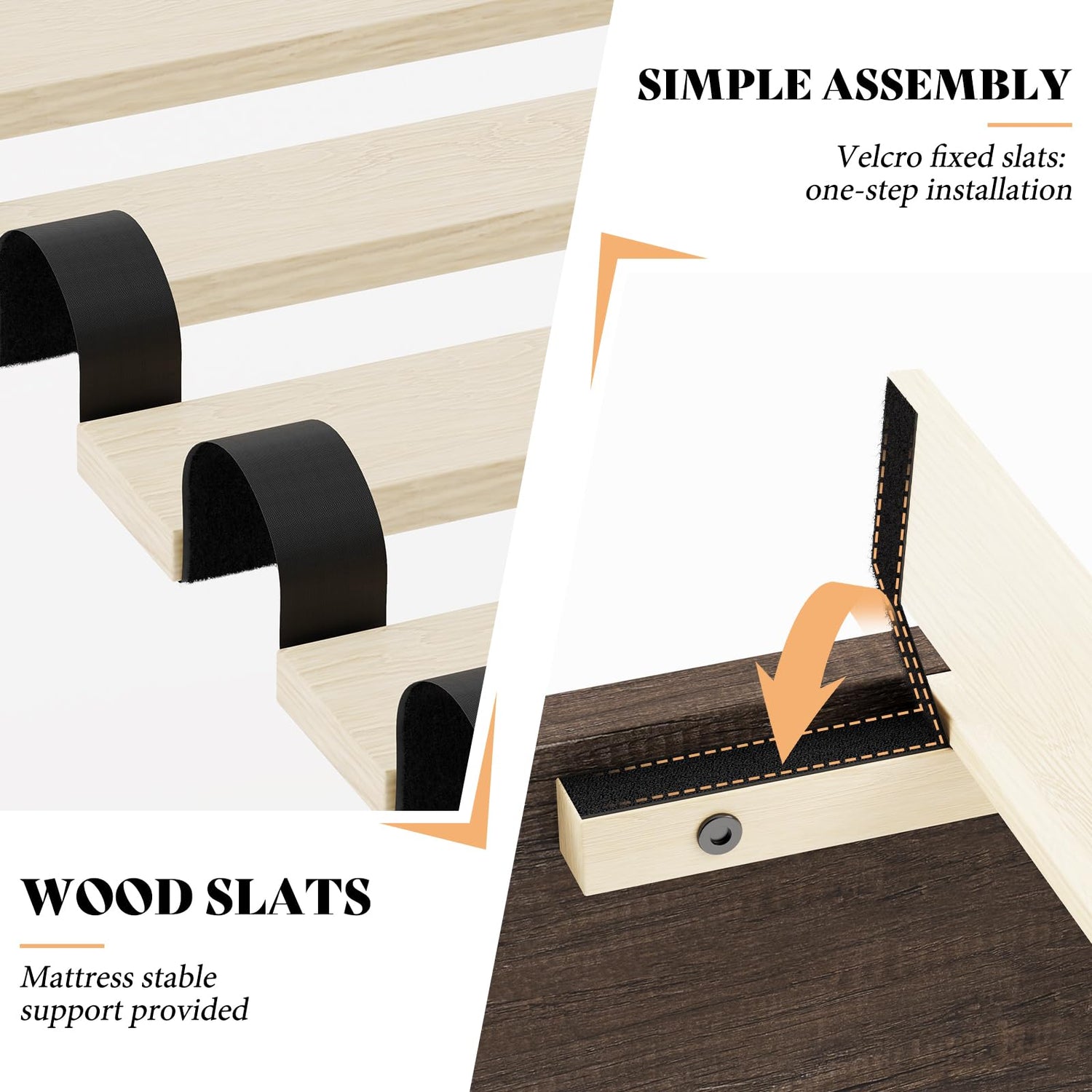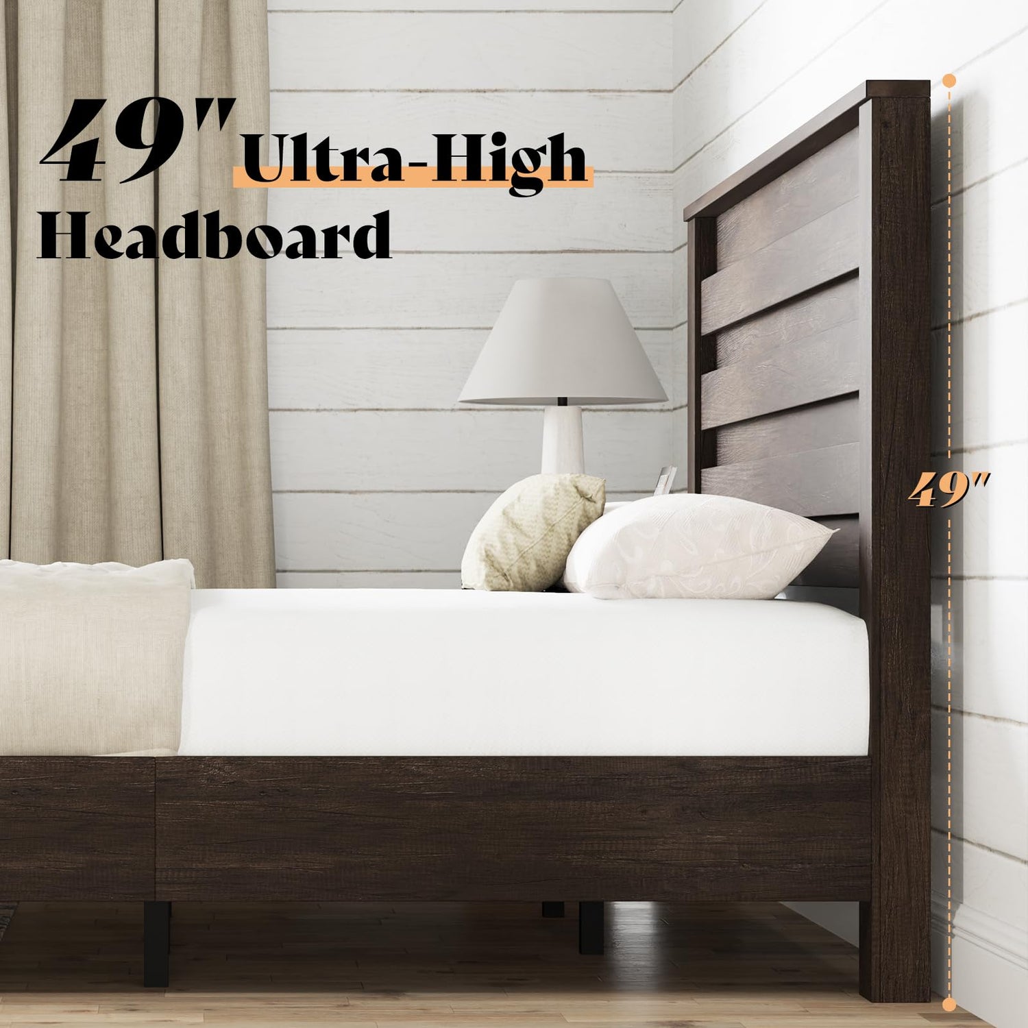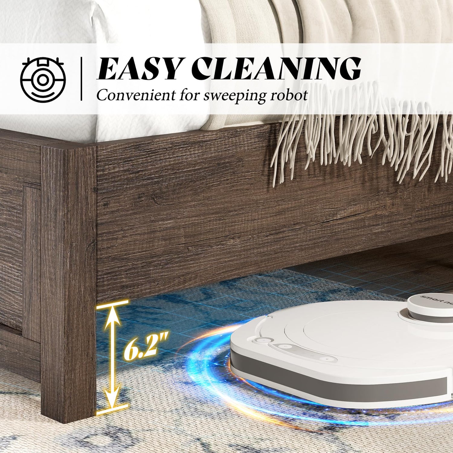 - 【Multiful Use】Ample under-bed storage space, for storing items or robot vacuum cleaner. 49" tall headboard accommodate mattresses from 10" to 16", adjustable as needed.