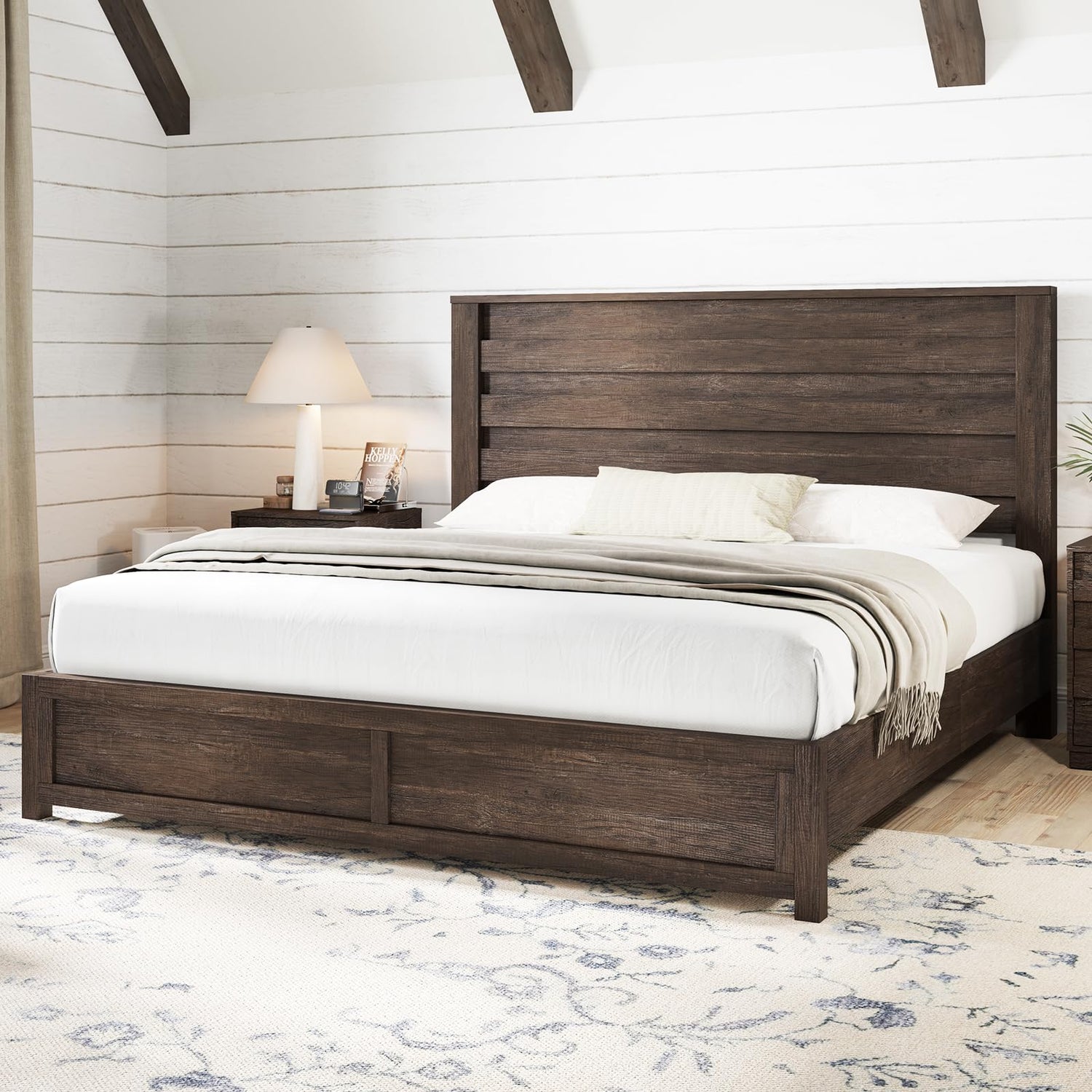 - 【Exquisite Design】This wood bed frame adopts a layered panel design concept with natural wood grain, adding depth and visual appeal to the headboard area.