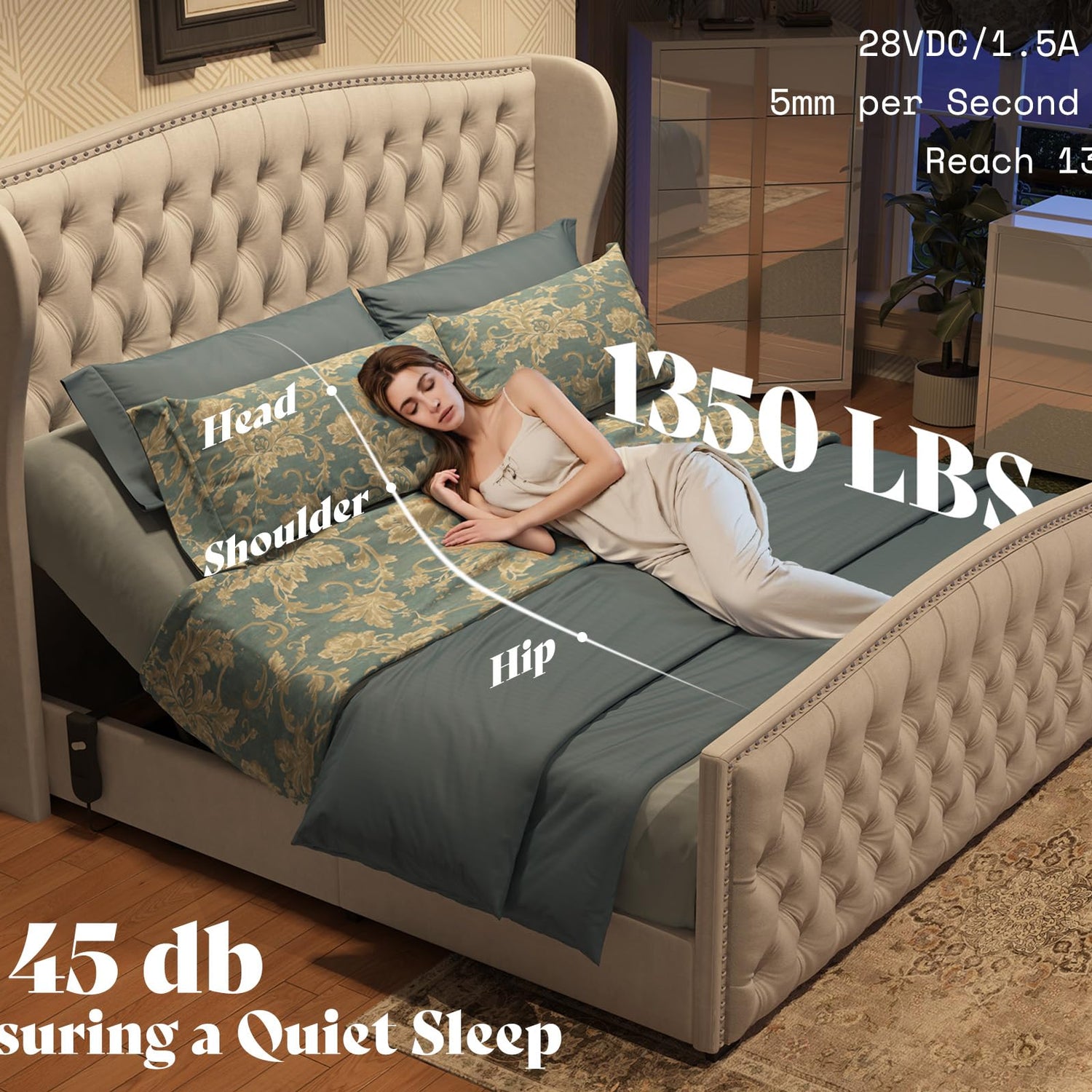- Sturdy & Stable: Electric bed features a reinforced crossbar and 12 durable legs for enhanced stability and support. Wood slats with noise-reducing padding further improve your sleep quality