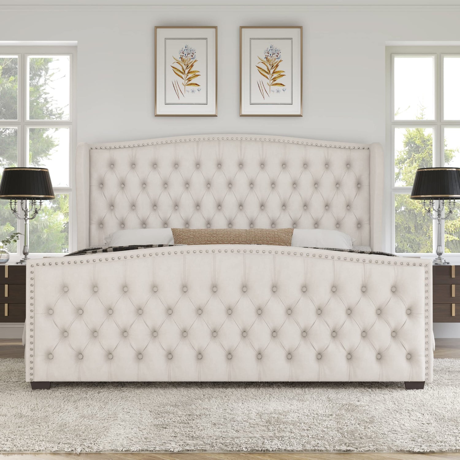• Grand and glamorous, our king bed frame features elegant tall wingback headboard & deep diamond tufted footboard, stealing spotlight in your bedroom decor.