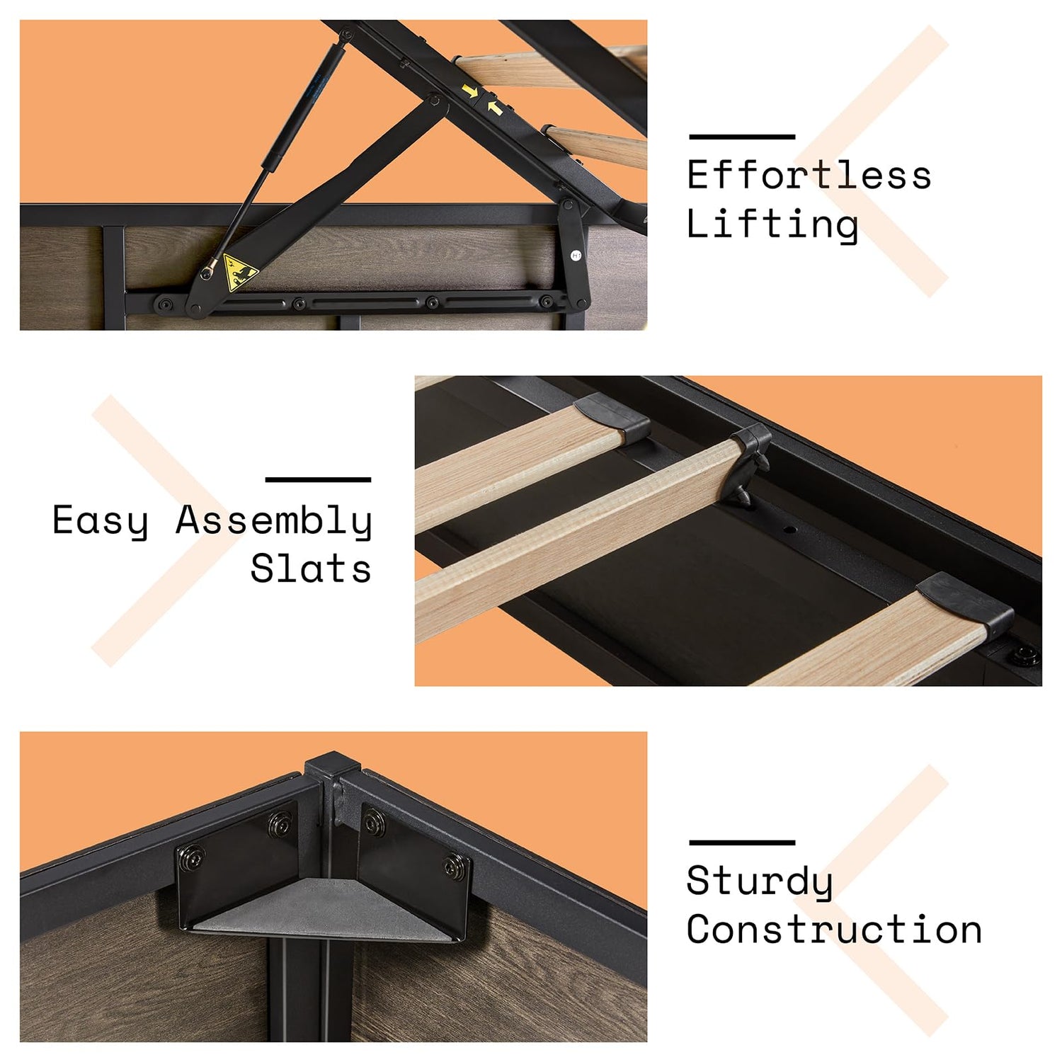• HUGE UNDER-BED STORAGE: Elevate your bedroom with our first lift-up storage bed frame without headboard, creating ample space underneath for your items.