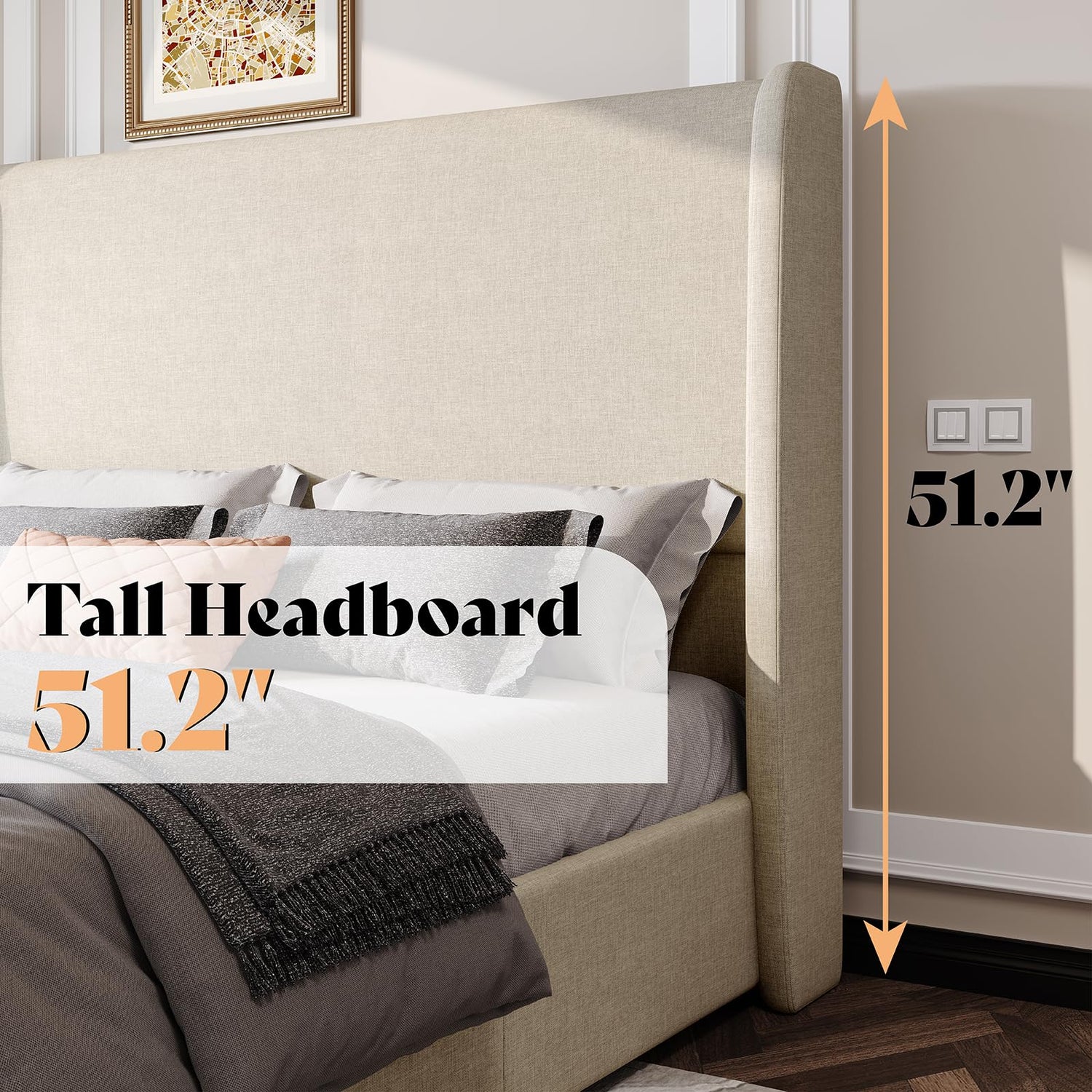 - Fashion & Comfortable Design: Enhance your bedroom with our 52.1" high wingback headboard, beautifully upholstered in soft linen. Its neutral tone effortlessly complements any style, from modern to classic
