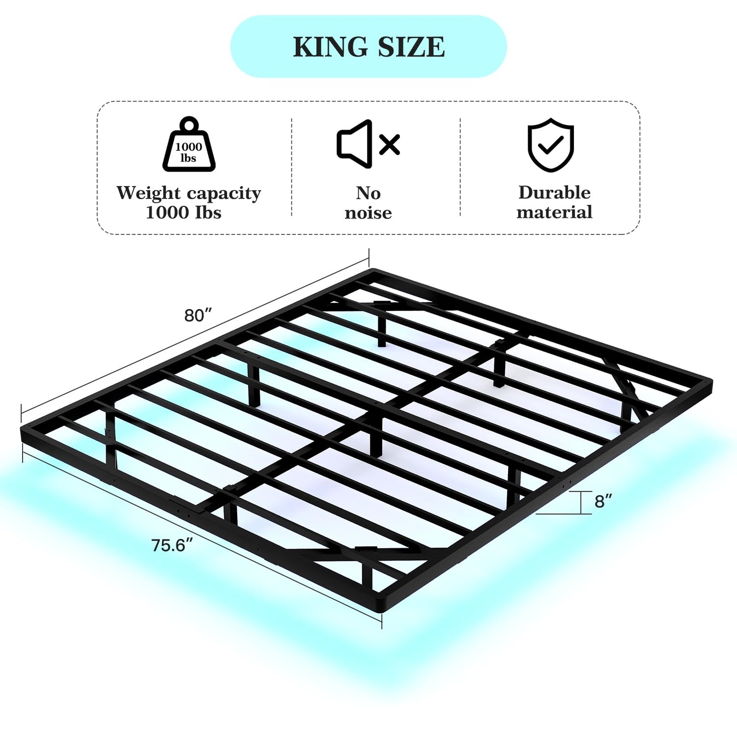 - ✅MULTI-MODE SMART LED LIGHTS: The King bed frame features three side hidden light strips, offering 22 Colors and Light Patterns. Control the lighting easily through the app or the remote, and enjoy customizable settings like music, voice activation, and timing modes. Discover endless possibilities and create the perfect ambiance to suit any mood!