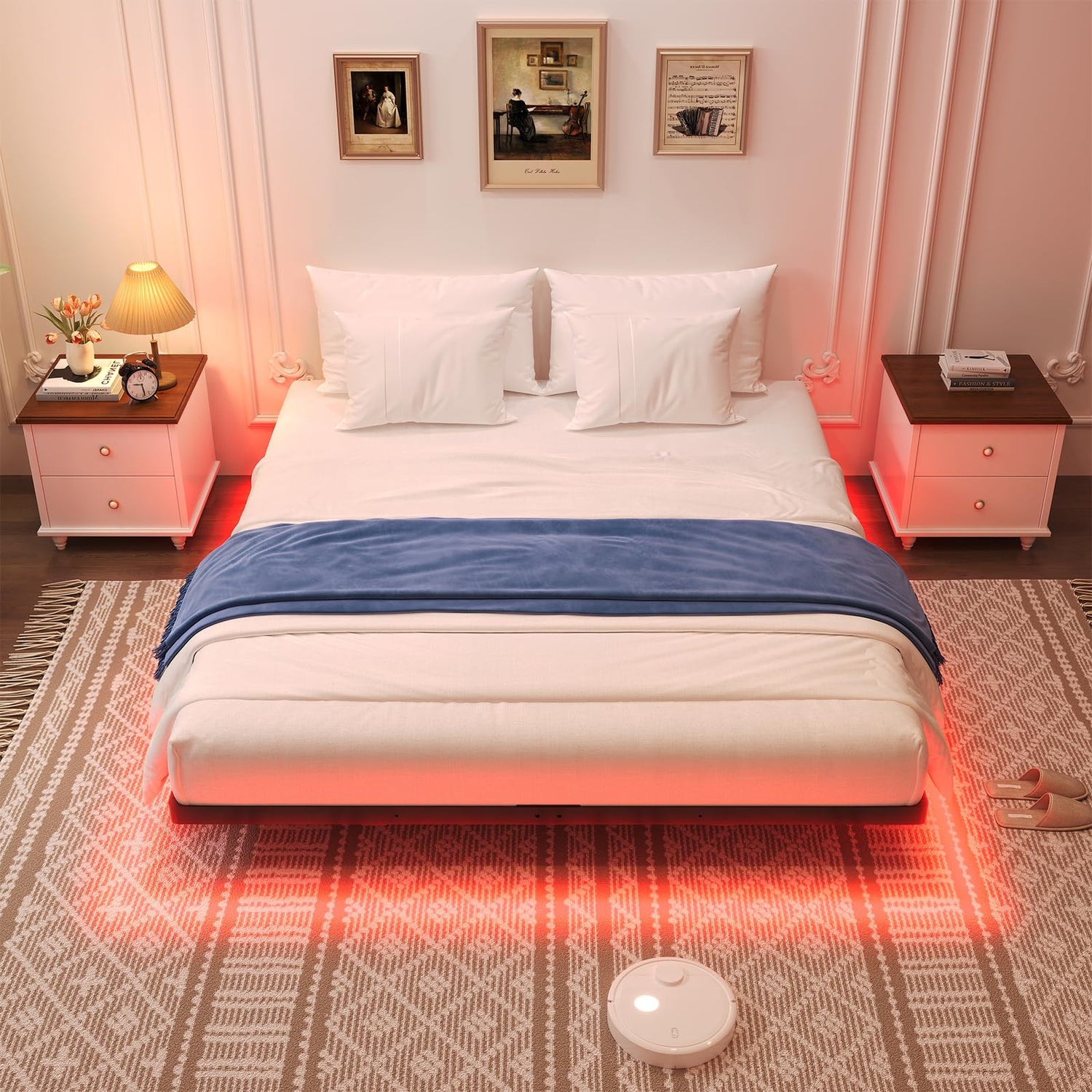 Awesofurni Floating Bed Frame King Size, King Bed Frame with Smart LED Lights, Heavy Duty Modern Metal Platform Bed No Box Spring Needed - Easy Assembly and Noise Free