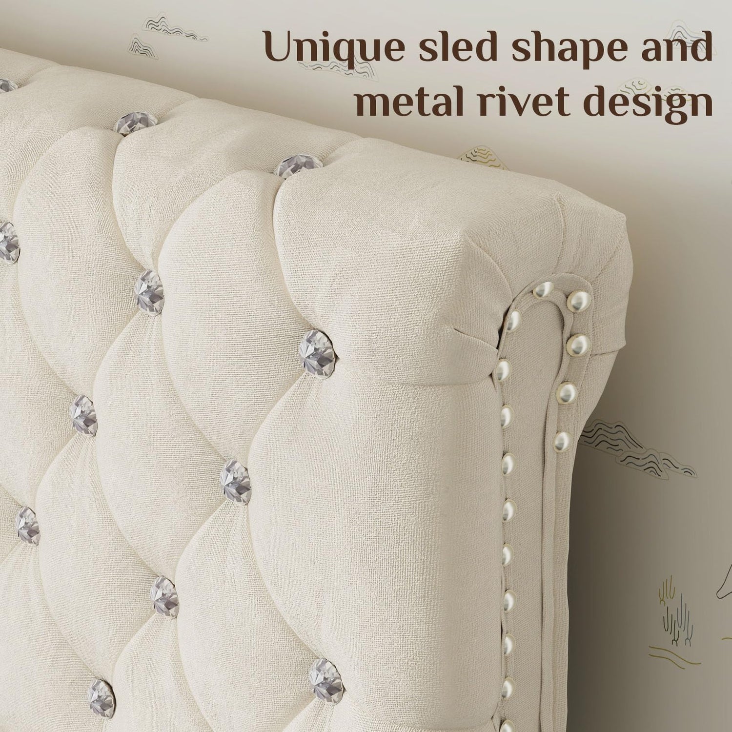 - Luxury and Comfortable: The upholstered is made by smooth velvet fabric and filled with high-density memory foam, which is skin-friendly and relieve your back pain. The velvet upholstered headboard has diamond tufted design. The velvet modern platform bed frame is both beautiful and practical, suitable for most decoration styles.