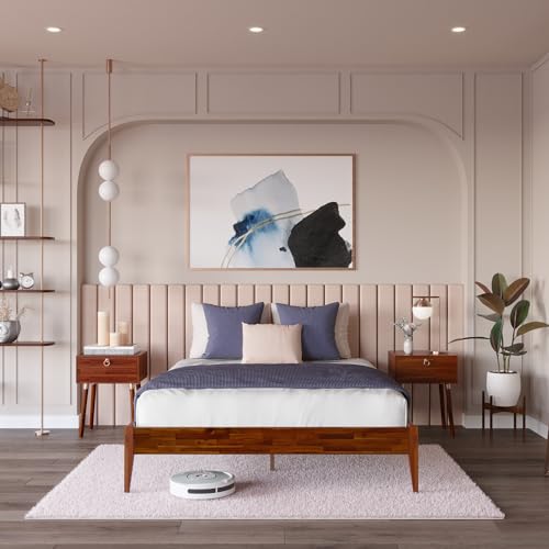 Introducing the Bme Dinkee 15-Inch Dark Chocolate Solid Wood Queen Platform Bed Frame, a perfect blend of minimalist design and exceptional durability. Crafted from sturdy acacia wood and complemented by a powder-coated iron frame, this bed frame promises longevity and style, making it a valuable addition to any bedroom.