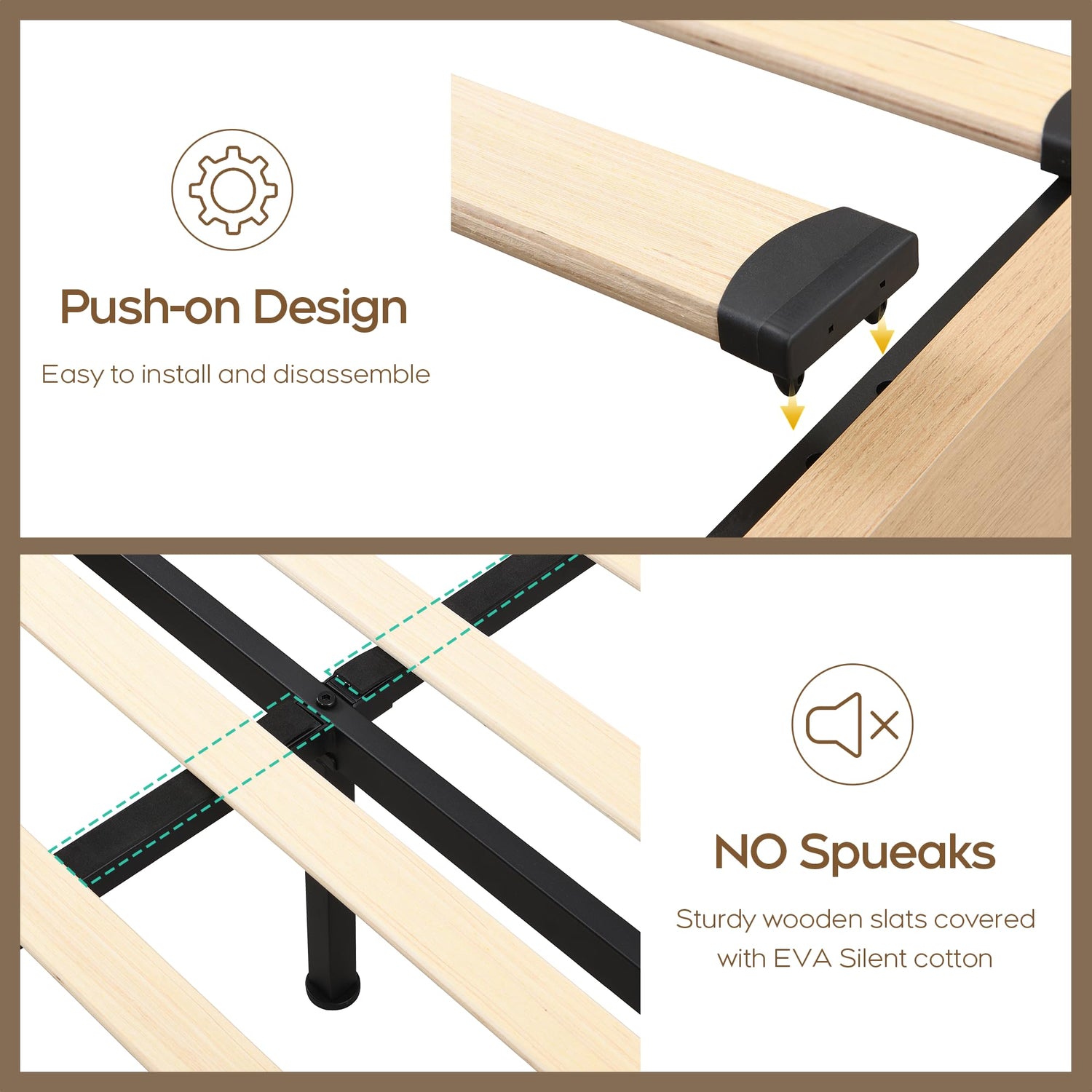- Modern, Noise-Free Design: Featuring a sleek and contemporary design, this bed frame blends seamlessly with various bedroom aesthetics. Equipped with two long anti-slip strips and foam padding on the metal beams, it minimizes noise, ensuring a quiet and restful night’s sleep.